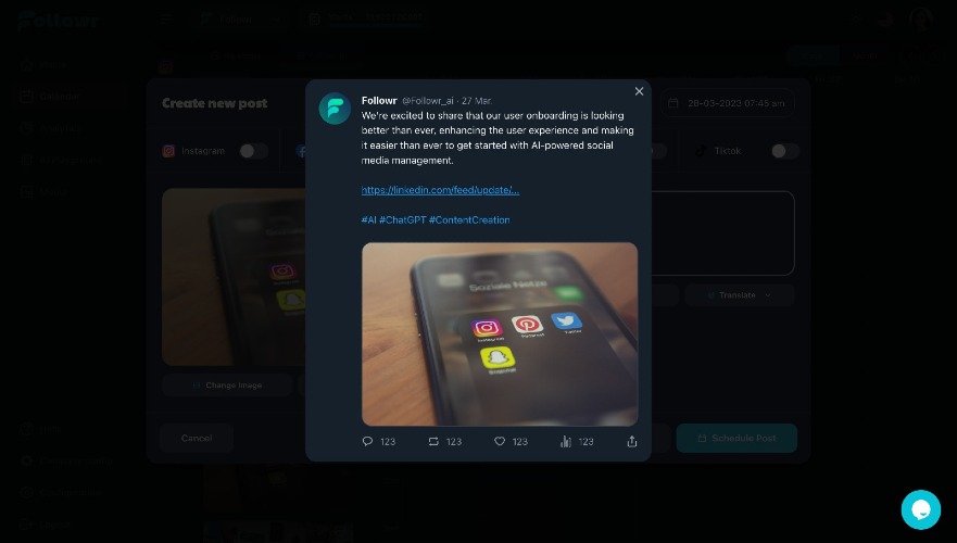 Followr.ai is revolutionizing the way startups, agencies, and entrepreneurs create social media content with the power of AI. With Followr.ai, users can train their very own chatbot to learn the ins and outs of their website, and generate optimized, AI-powered content that speaks to their brand's unique voice. Featuring powerful tools like summarization, translation, and tone adjustment, Followr.ai empowers users to streamline their content creation process and focus on what really matters: growing their business. With advanced scheduling and analytics features, Followr.ai is a must-have for anyone looking to take their social media presence to the next level. Experience the future of content creation with Followr.ai today!