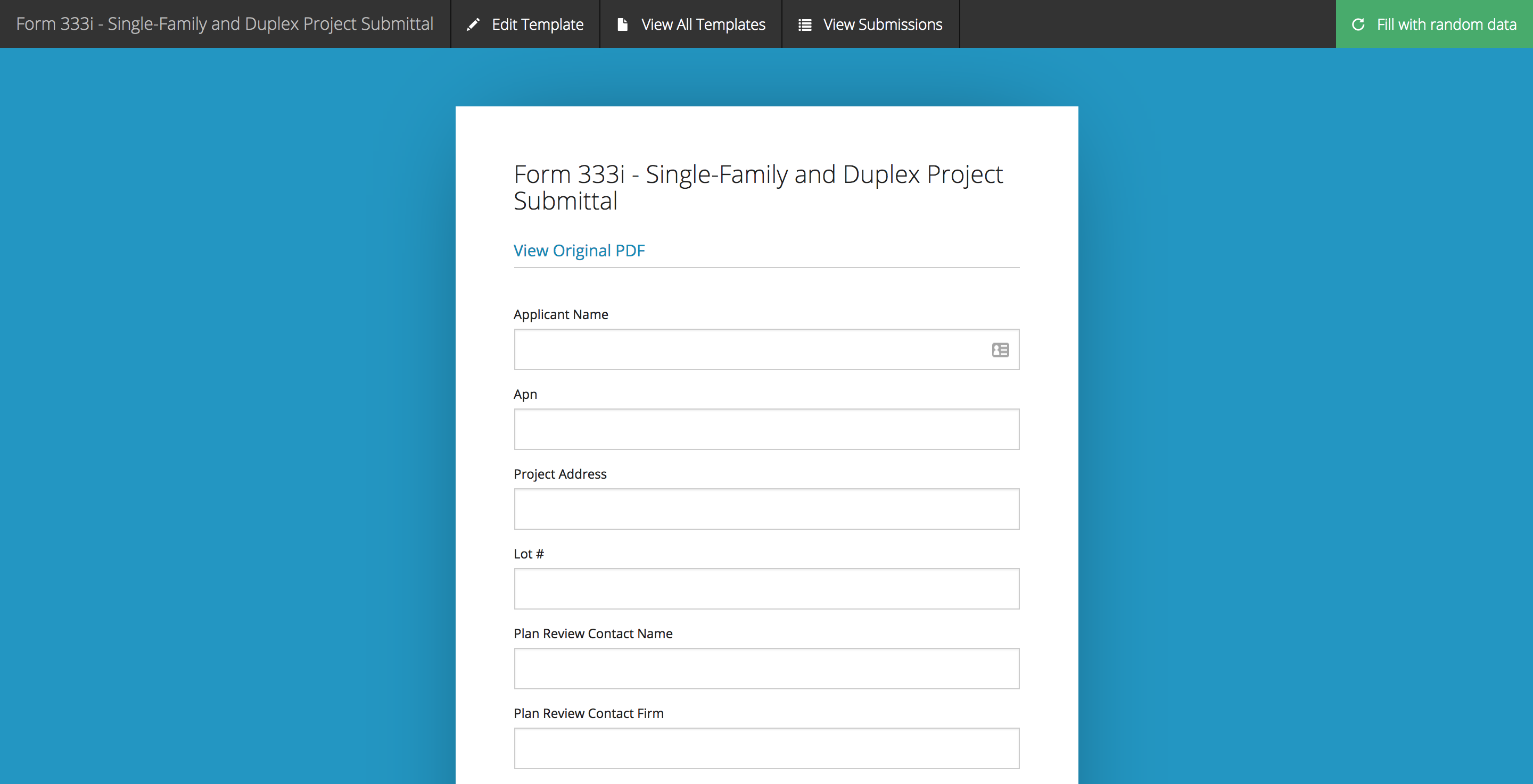 FormAPI makes it easy for developers to fill out PDF forms. 1. Upload your PDF template 2. Use our powerful template editor to configure field types and positions 3. Make an API request to fill out the template 4. Download your PDF