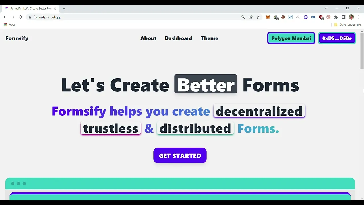 š The Problem š¢ Currently available "Online Survey Services" (Google Forms, TypeForms, etc.) are Centralized, Trust-Based & Dependent. Thus, we have challenges of Integrity, Transparency and Accessibility. - If they go down, your data goes too. š - You cannot interact with your forms without them, as your forms are hosted on their platform. š - There is no way to actually verify or make sure that your form data was unaltered, because those services act as the only source of trust & validation. š¤ šÆ The Solution š Formsify helps in creating Decentralized, Trustless & Distributed forms by giving each form their own digital identity in terms of smart contract and storing them on-chain. Thus, we address the challenges of Integrity, Transparency and Accessibility. - Since forms are decentralized, even if we go down, you can still access your data. š - Your forms can be independently interacted with and you actually don't need us to fill the forms. We just act as interface, which can be re-built by anyone. š¤ - Entire form history is recorded on-chain. So, you can always trace back any submission and because of blockchain's immutability factor, your forms will always remain unbiased as well as unalterable. ā š Added Advantages of Formsify Forms over Web2 Forms - Captcha-Free: Since each form is backed by gas, your forms are infeasible to be spammed by bots. š - Self-Reliant: Forms have their own digital identity. So even if we shut down our site and run away tomorrow, you can still access your forms, even on Mars (provided, you got a blockchain node running over there). š§ - Immutable: Well, it will take 10^24 (Septillion) years for anyone to hack and alter your Formsify forms, we mean it. š š Formsify aims to revolutionize the working of "Online Survey Services", in order to create better versions of forms which are empowered by Web3.