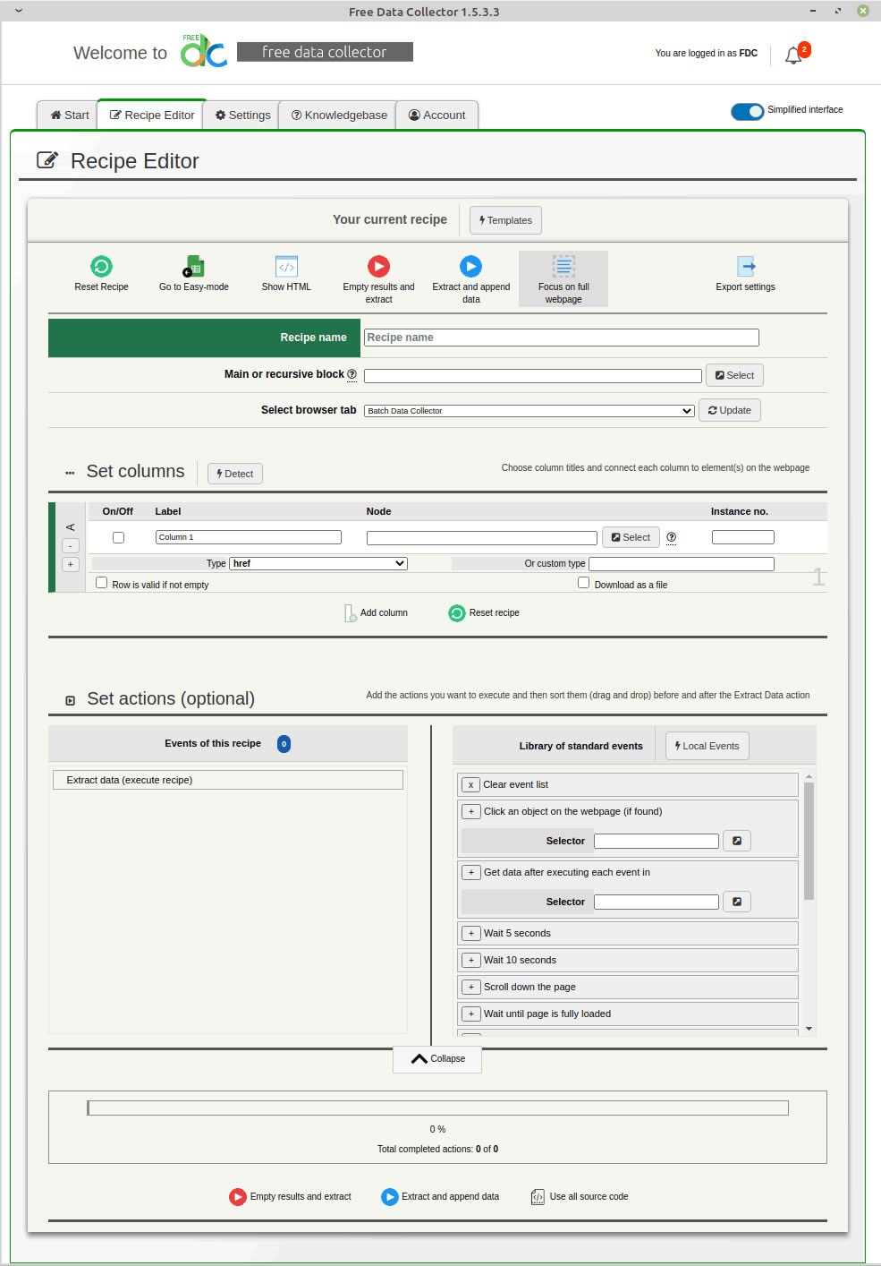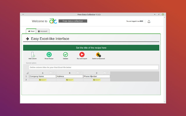 Free Data Collector allows you to gather data from any website, quickly and easily. It was completely rewritten to offer an interface similar to what you already know – Excel. You can visually compose your final file, and can easily capture the right web elements thanks to our point-and-click guide. Our Chrome extension brings expert-level data sourcing software into the mainstream, focusing on ease-of-use for users who may be new to data extraction, limitless browsing for the most serious data jockeys, and advanced features for experts looking to maximize both control and efficiency. Features: - Excel, CSV, and JSON exports - Recipe creator - Source code “guide” integrated into recipe creation - RegExp-ready, including character extraction and boolean presence test - Standard and non-standard attribute analysis and extraction - Custom text isolation and capture between two fixed points - AJAX event management, such as page scrolls and button clicks - In-app data manipulation, validation, and/or exclusion prior to export - Various browsing controls and throttles, such as blocking javascript or multimedia objects for faster browsing