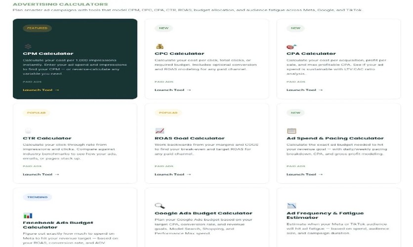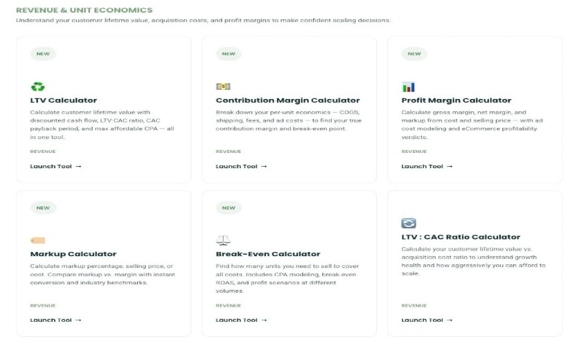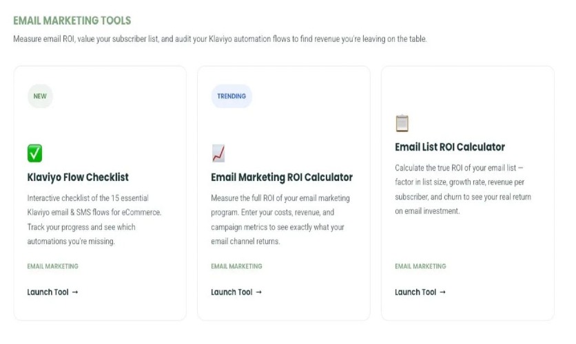 eCommerce Marketing Tools: Free calculators and tools for eCommerce brands. Calculate email ROI, ROAS, ad budgets, LTV:CAC and more. No signup required. Boost your eCommerce growth today!