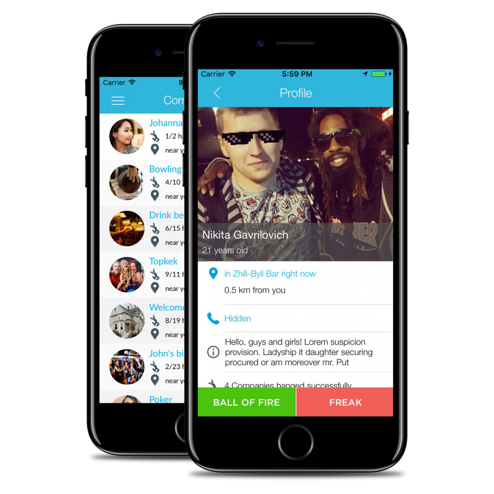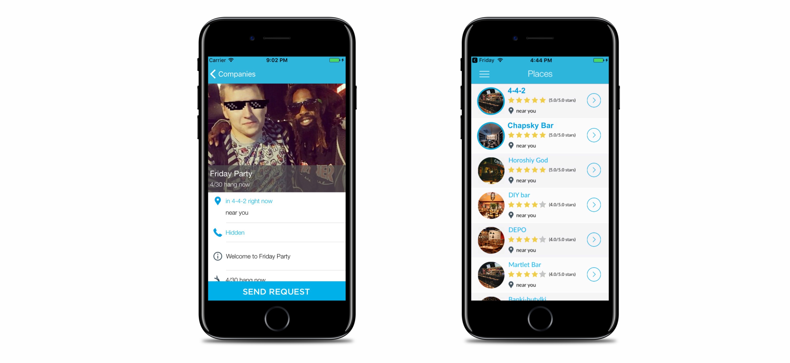What is Friday? Friday is a mobile application that helps people get acquainted in the real world and in the real time with the help of additional reality. Friday helps to find the best places for parties and new friends nearby. As practice shows, for the last time people are less and less acquainted in the streets and even in bars. More and more dating occurs on the Internet, and we think it`s wrong. As you know the most difficult thing is to make the first step and the app will do it for you We on indiegogo: https://www.indiegogo.com/projects/friday-app-mobile-phone Web site: http://fridayapp.org/