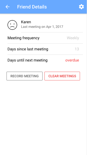 Friendtainer is an app which helps you maintain relationships. It lets you define how often you want to meet with your friends. Whenever you meet with one of your friends, you record a meeting in Friendtainer. If you fail to meet with your friends according to the desired frequency, Friendtainer will send you gentle reminders via email or push notifications.