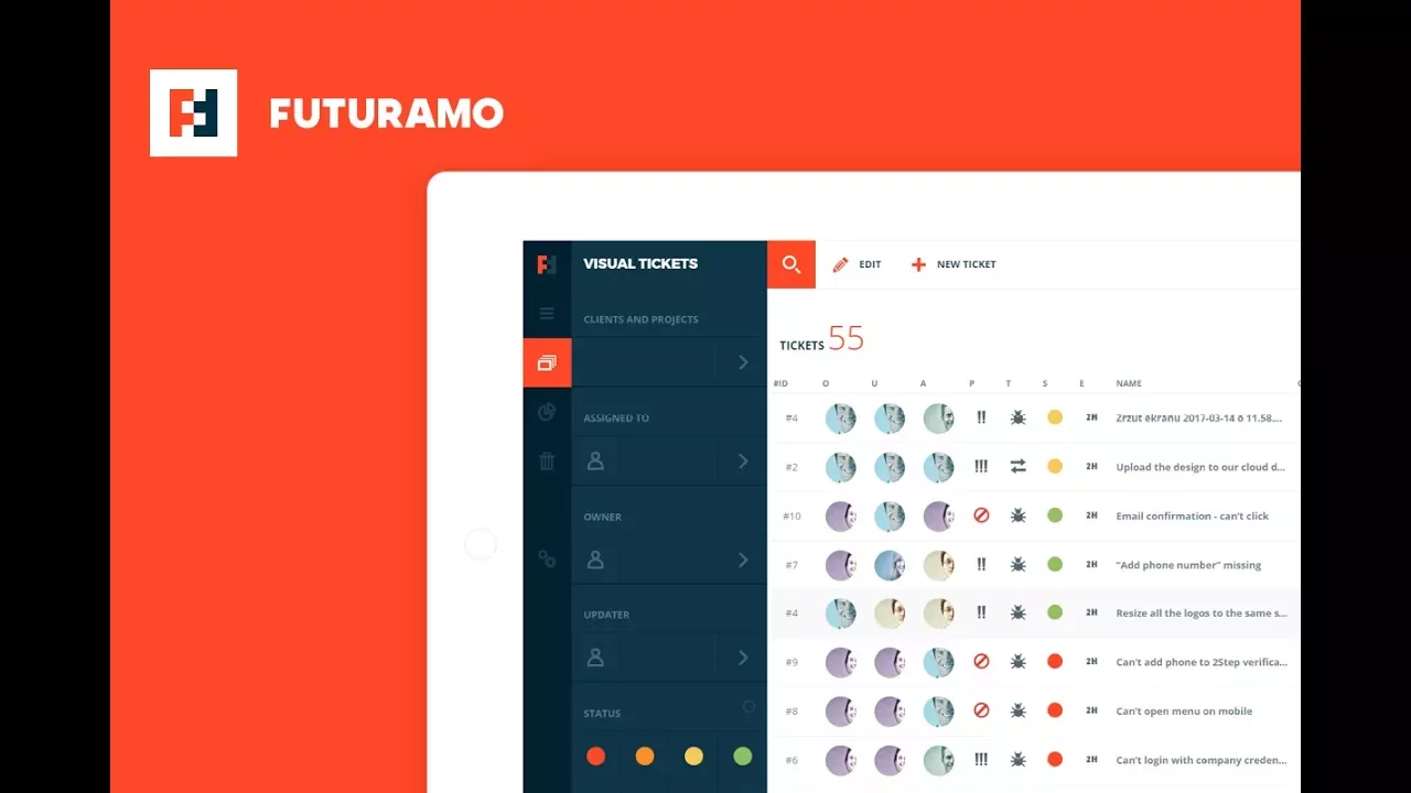 Futuramo Visual Tickets lets teams, collaborators and business partners effectively exchange ideas, opinions and requests. With intuitive features to create, edit and share tickets, teams are free of long text explanation and can easily communicate and collaborate. What makes Visual Tickets different is its focus on the visual approach. Images are put at the forefront of the message. All attention is focused on a screenshot or a file that users can paste directly into the ticket window.