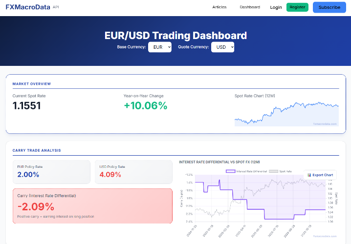 FXMacroData provides high-frequency, standardized macroeconomic data and historical FX rates built for quantitative trading and financial analysis. Data is aggregated from major central banks including the ECB, FRED (Federal Reserve), and RBA into a single, easy-to-use REST API. Getting started (1-month free trial): 1. Visit [https://fxmacrodata.com](https://fxmacrodata.com) 2. Sign up for the Professional tier to activate the free trial 3. Copy your API key from the dashboard 4. Paste the key into the `apikey` header in Postman or your application Why quants use FXMacroData: * Zero lookahead bias: Uses actual announcement timestamps, not reference periods * Real-time central bank feeds: Updated within minutes of official releases * Institutional-grade coverage: 17+ indicators including GDP, CPI, NFP, policy rates, and government bond yields * Developer-first: Designed for Python, pandas, and NumPy workflows, with an official GitHub library Available data: Monetary policy: Policy rate, interbank rate Economy: GDP, inflation (CPI), trade balance, current account Labor market: Unemployment, employment (full/part-time), participation rate, non-farm payrolls Bonds: Government bonds (2Y, 3Y, 5Y, 10Y), inflation-linked bonds Supported currencies: USD, EUR, GBP, AUD Authentication and usage: * API key required for EUR, GBP, and AUD data * USD data is available without an API key * Header: apikey: YOUR_API_KEY * Base URL: [https://fxmacrodata.com/api](https://fxmacrodata.com/api) Sign up at [https://fxmacrodata.com](https://fxmacrodata.com) to get your API key and start automating your macro strategy.