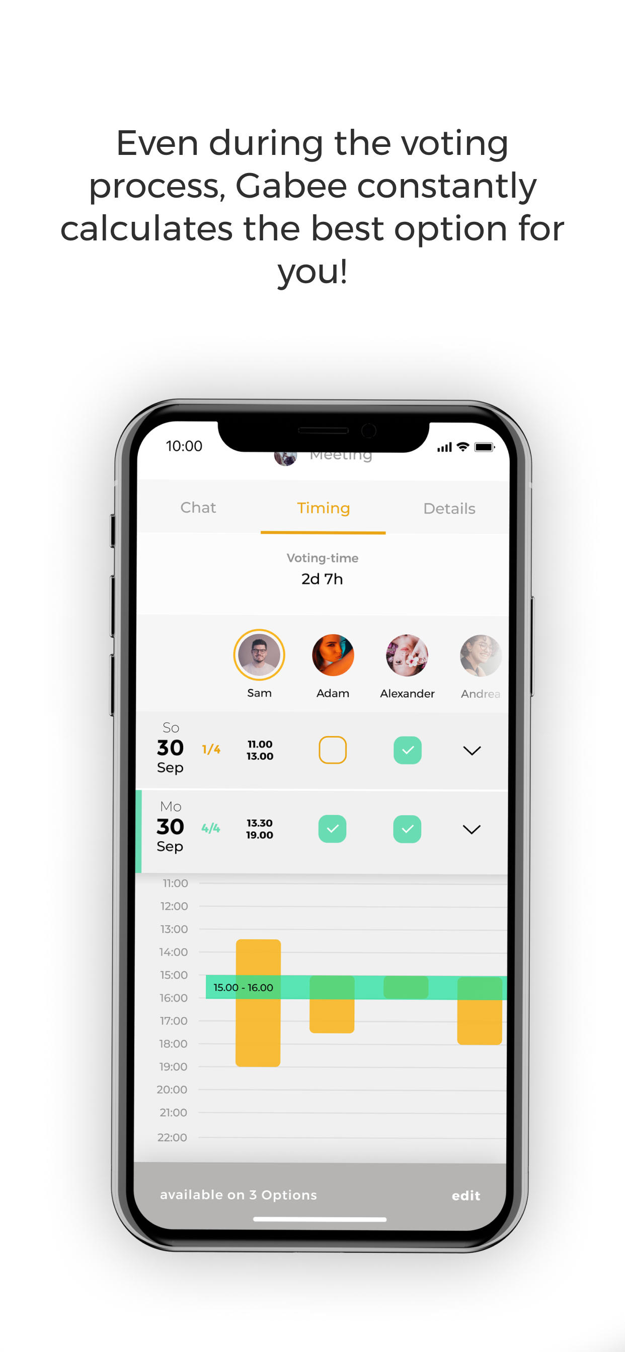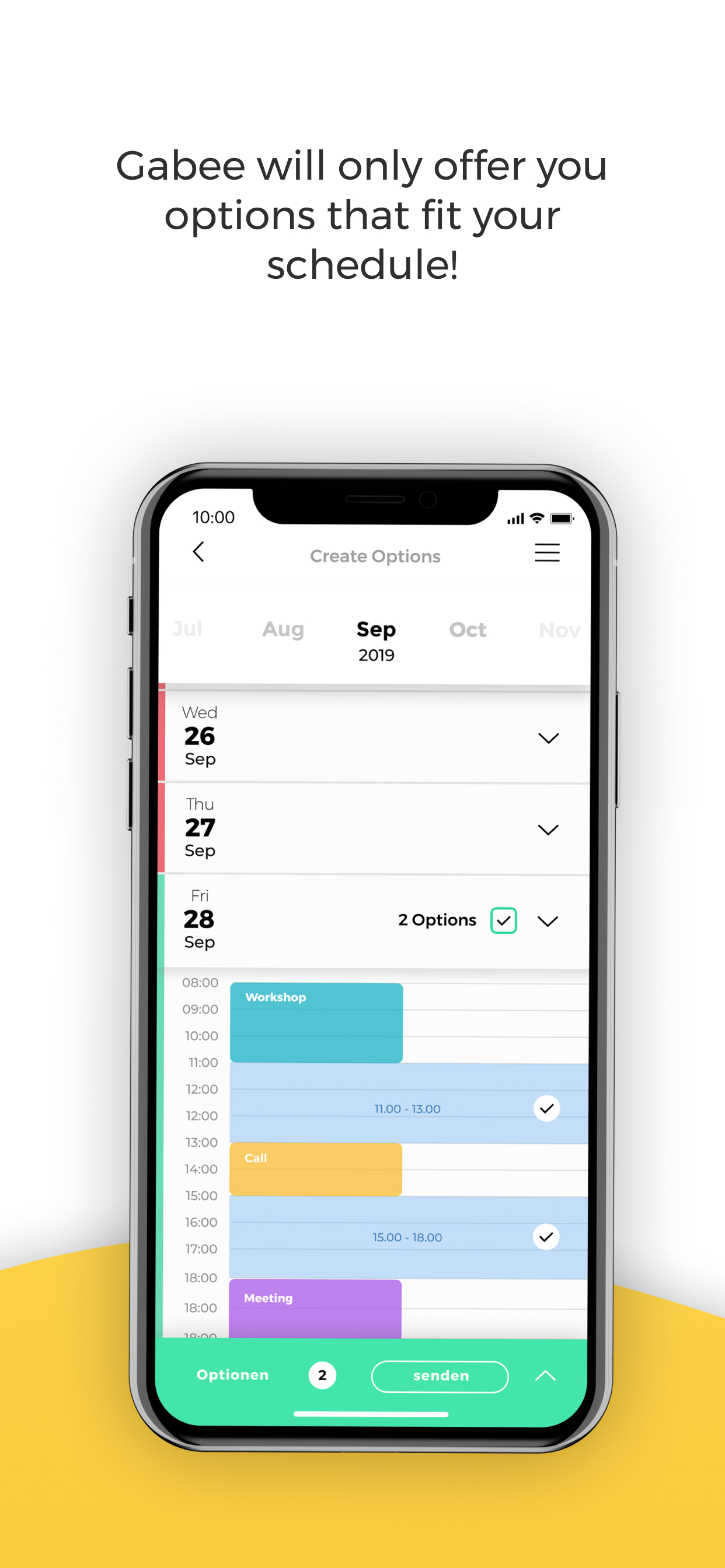 THE BEST TOOL FOR EASY AND FAST SCHEDULING! Our unique coordination process supports you right from the start! Gone are the days when you had to adjust your free times to choose the right options. Everything happens automatically. The same goes for the reminder function for participants who don't respond in time. By comparing the availability of all participants, the best option for all is automatically created. Planing an activity? Meeting up with friends and colleagues? Forget chat and email ping pong. With Gabee you get the first interactive and intuitive scheduling tool. Pick from suitable options and create your poll for the whole lot. Set a voting time and let your invitees vote for their preferred choice. It’s on! IT’S IN YOUR HANDS - BEE IN CONTROL AI is a lot of fun and saves tons of time, but it often just doesn’t quite get the nuance of some situations. That is why Gabee is so user-centric in it’s approach and design, compared to other applications in its class. Making it insanely easy to correct all outcomes with simple commands. LIVE CONNECTIONS - BEE CONNECTED Gabee enables never seen before connectivity. Filling the logical gap that has been overseen in the market of scheduling and booking. Let’s bring people, businesses and booking platforms together. Simply, effectively and Intuitively. CREATE AND ENGAGE - BEE CREATIVE Meet-Ups, appointments and any event deserves the right attention. They shouldn’t just be markers in your calendar or some boring outlook invitations. Bring your activity or event to life. Make it funny, cool, informative, weird, just attention-grabbingly awesome! ------------ Registration and use of Gabee is completely free. ---------------- Your feedback is extremely important to us so that we can constantly improve our app. We would be happy if you send us an email to [email protected]. We look forward to every message!