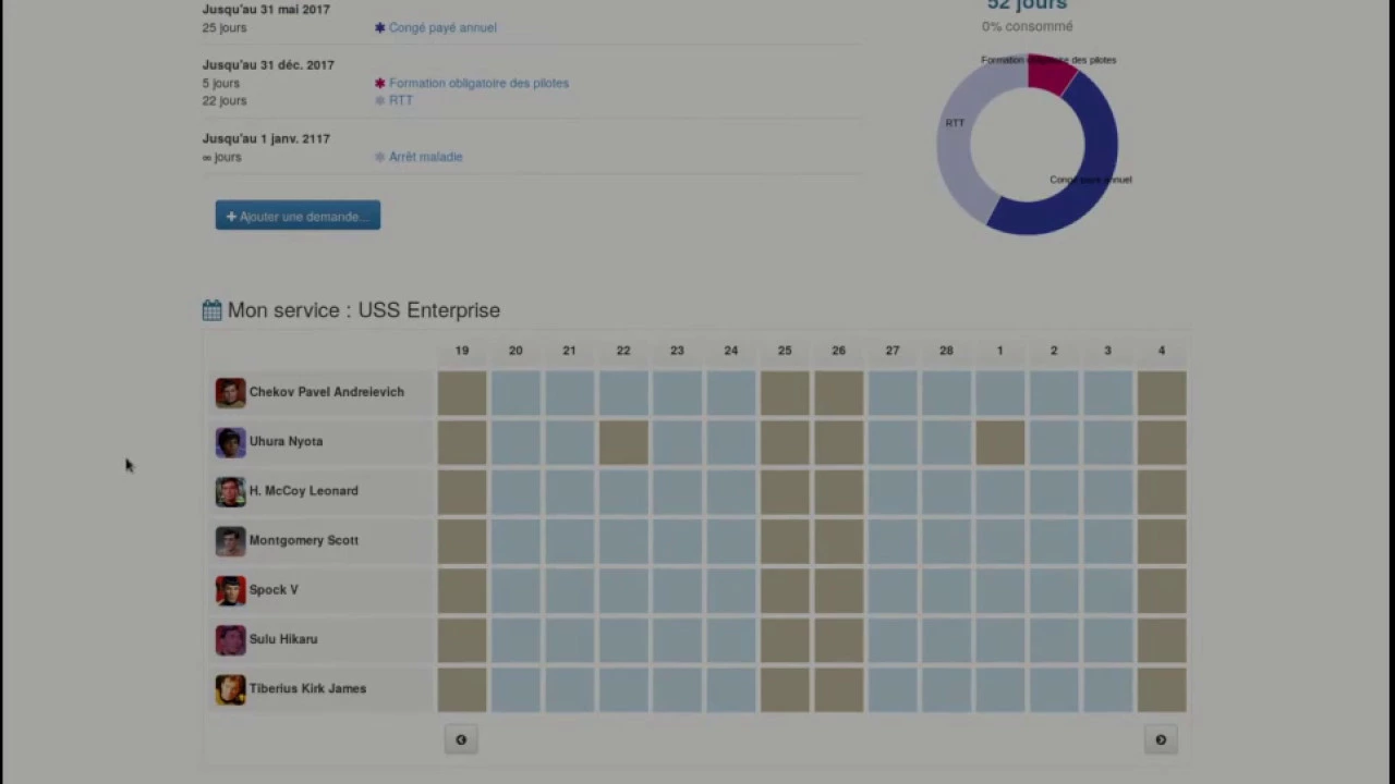 From the gadael.com website, users will be able to register and create an instance of the Gadael application for their company. Each user must first choose a name that will be used in subdomain. Each user company is therefore isolated on its own site. The application once created in the subdomain allows to create accounts and manages itself its own authentication. The accounts of gadael.com do not allow to use the application but only to start it, to stop it, to switch to paid plan, etc… Gadael allows management of leave requests, working-time recovery requests, time saving accounts, different types of balance consumption for part-time workschedules. Several configurable levels of approval, display of calendars by services or personal calendars. Seniority rights, country specific rights, etc.
