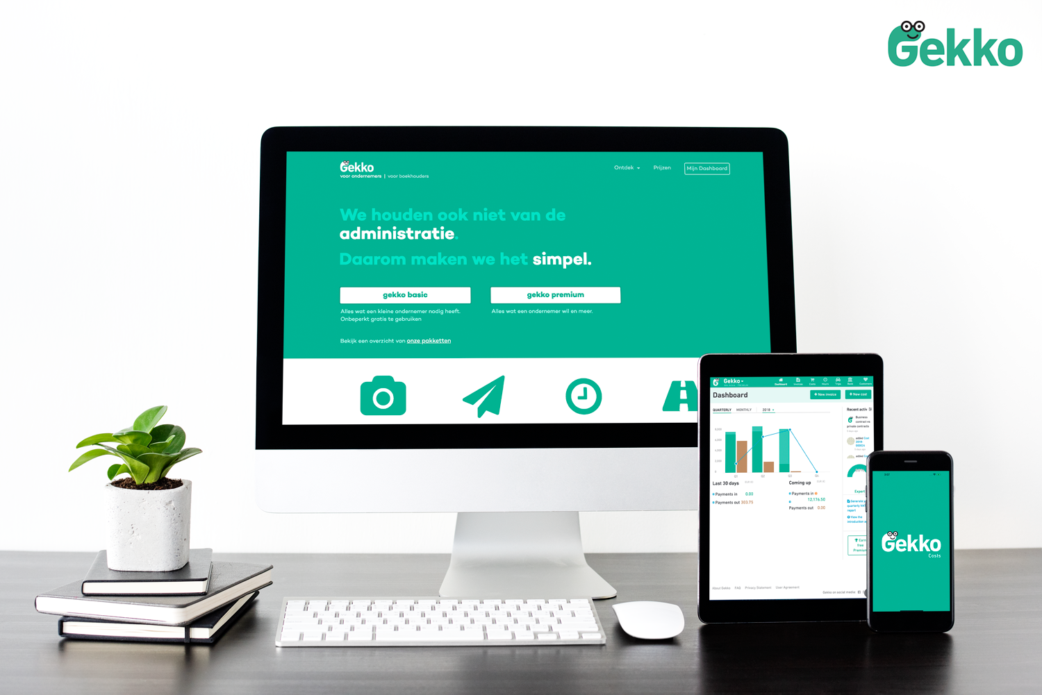 Gekko is an Amsterdam based company developing the Gekko network: Making the life of small business owners easier so they can focus on what they are good at, that is their business. We believe that having your own company should not mean that you have to spend a lot of money and effort on keeping track of your company accounts. We therefore provide small entrepreneurs with free and easy to use financial tools that allow them to manage their company books in the cloud. With free mobile apps that help companies keep track of hours, kilometers, expenses and an integrated online account, we provide entrepreneurs with the tools they need to manage their business. Want to know more about what Gekko can mean for your business? Check our website at www.getgekko.com and start your journey to a carefree administration today.