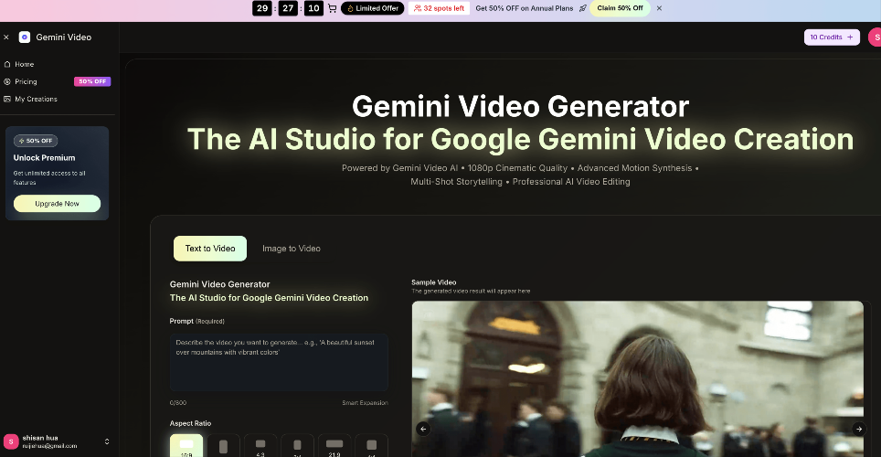 Gemini Video is an all‑in‑one gemini video generator and gemini video ai studio built on google gemini video technology. Create cinematic clips, edit short‑form content, and turn any idea into polished stories with the gemini video editor and gemini video creator tools. Powered by google gemini video models, it helps creators of all levels generate professional, ready‑to‑publish AI videos in seconds.