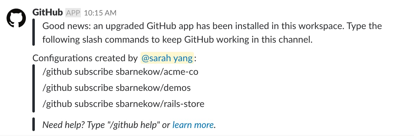 The GitHub integration for Slack gives you and your teams full visibility into your GitHub projects right in Slack channels, where you can generate ideas, triage issues and collaborate with other teams to move projects forward. This integration is an open source project, built and maintained by GitHub.