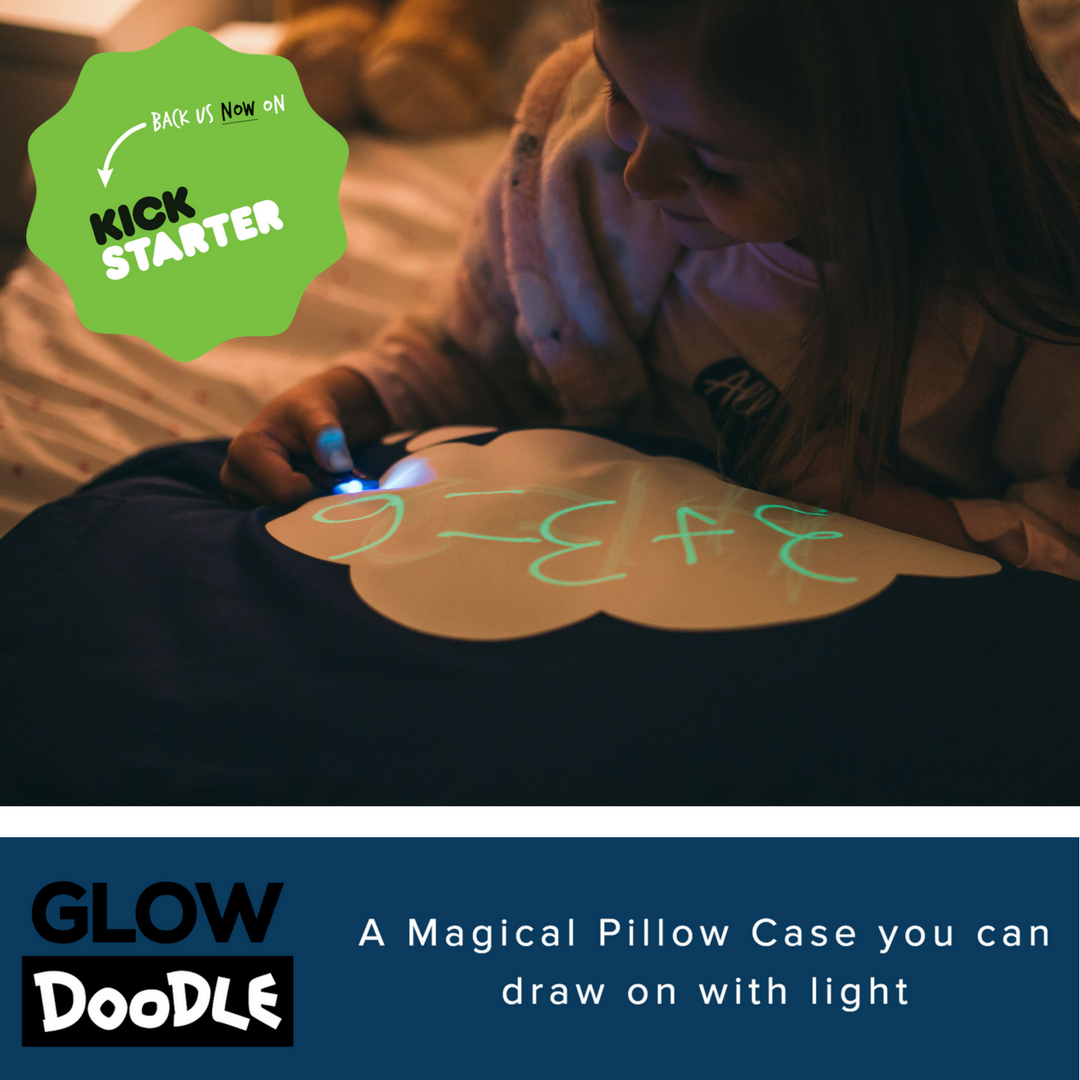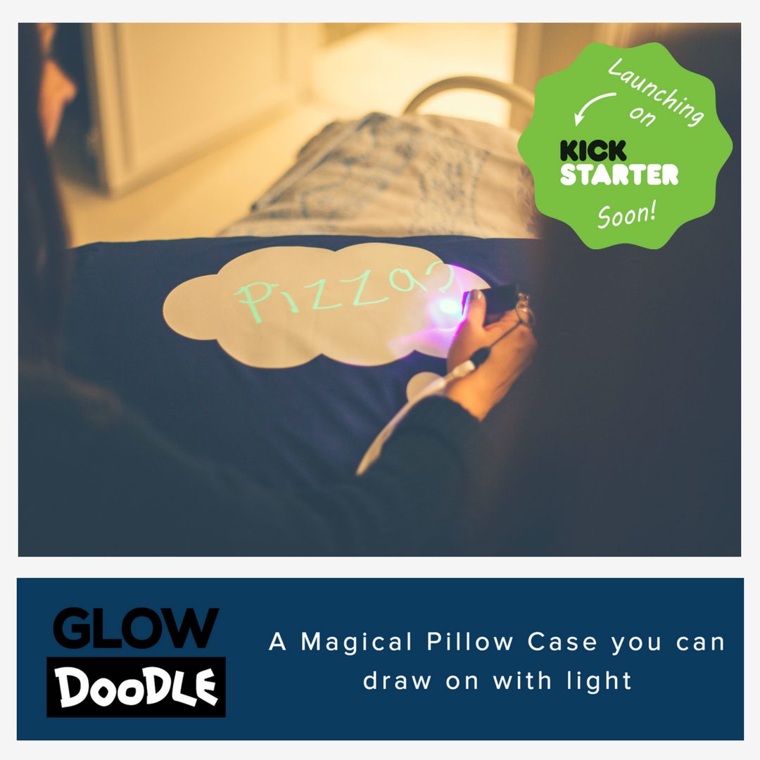 Glow Doodle is a interactive pillow case that brings out your creativity and imagination at night. Using light you can draw, doodle, and play by charging up the unique luminescent ink on the pillow case. Then as the glow fades, your artwork will magically disappear leaving you with a clean canvas to create a whole new masterpiece - no mess, just fun!