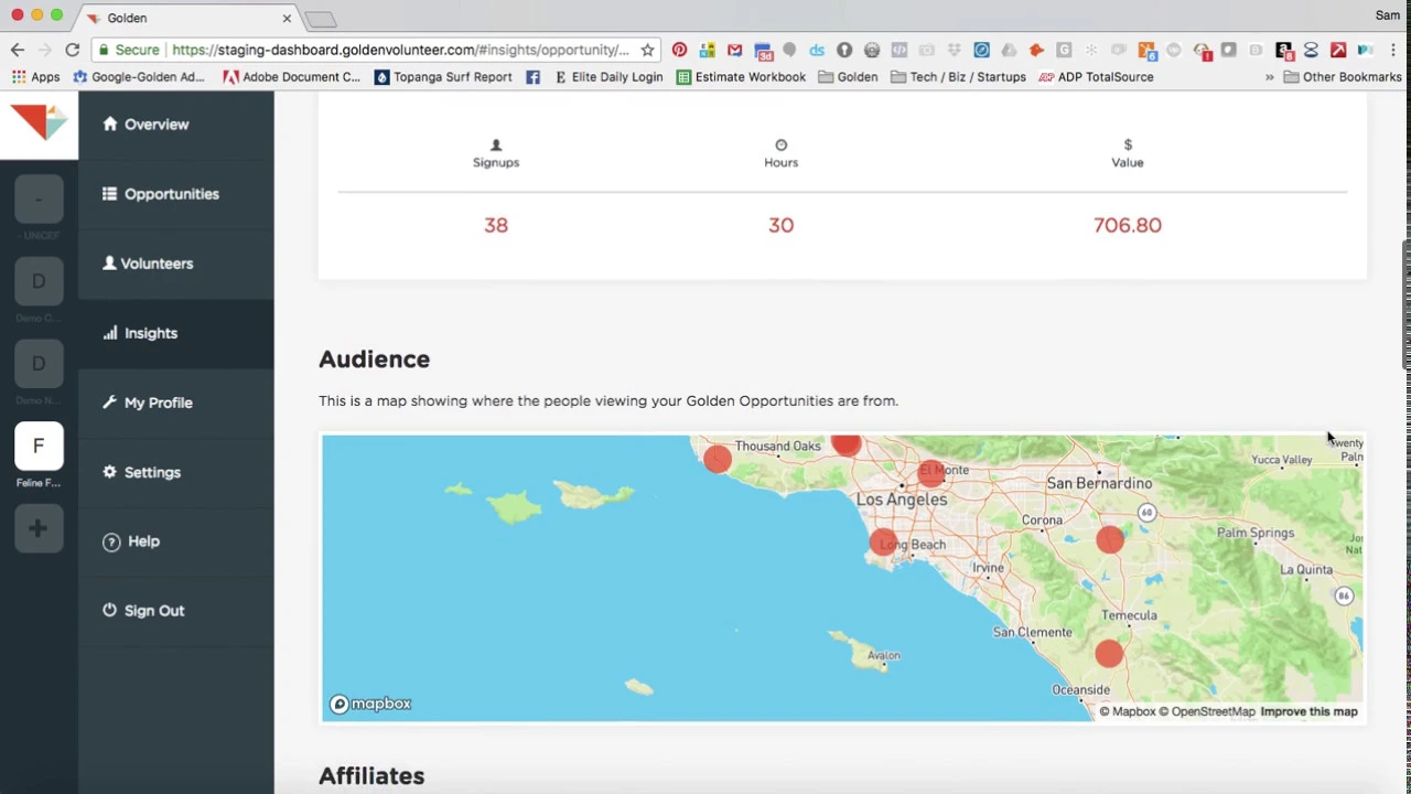 Golden’s free dashboards are a turnkey way to do all your volunteer management easily from any device. Once you list your volunteer opportunities through Golden, all scheduling, background checks, communication tools, hour tracking, and visualization of real-time impact and lots of other analytics is automated - no data entry!