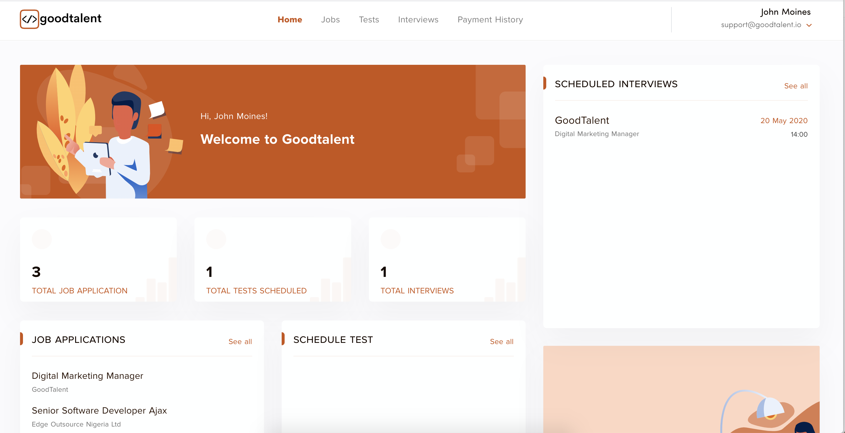 Goodtalent helps companies build software engineering teams! We find, assess and hire both remote and on-premise developers and engineers. Our platform provides full end to end overview of a developer from sourcing to hire. Our market leading coding tests provide deep insights into the coding skills of any developer within a project based environment.