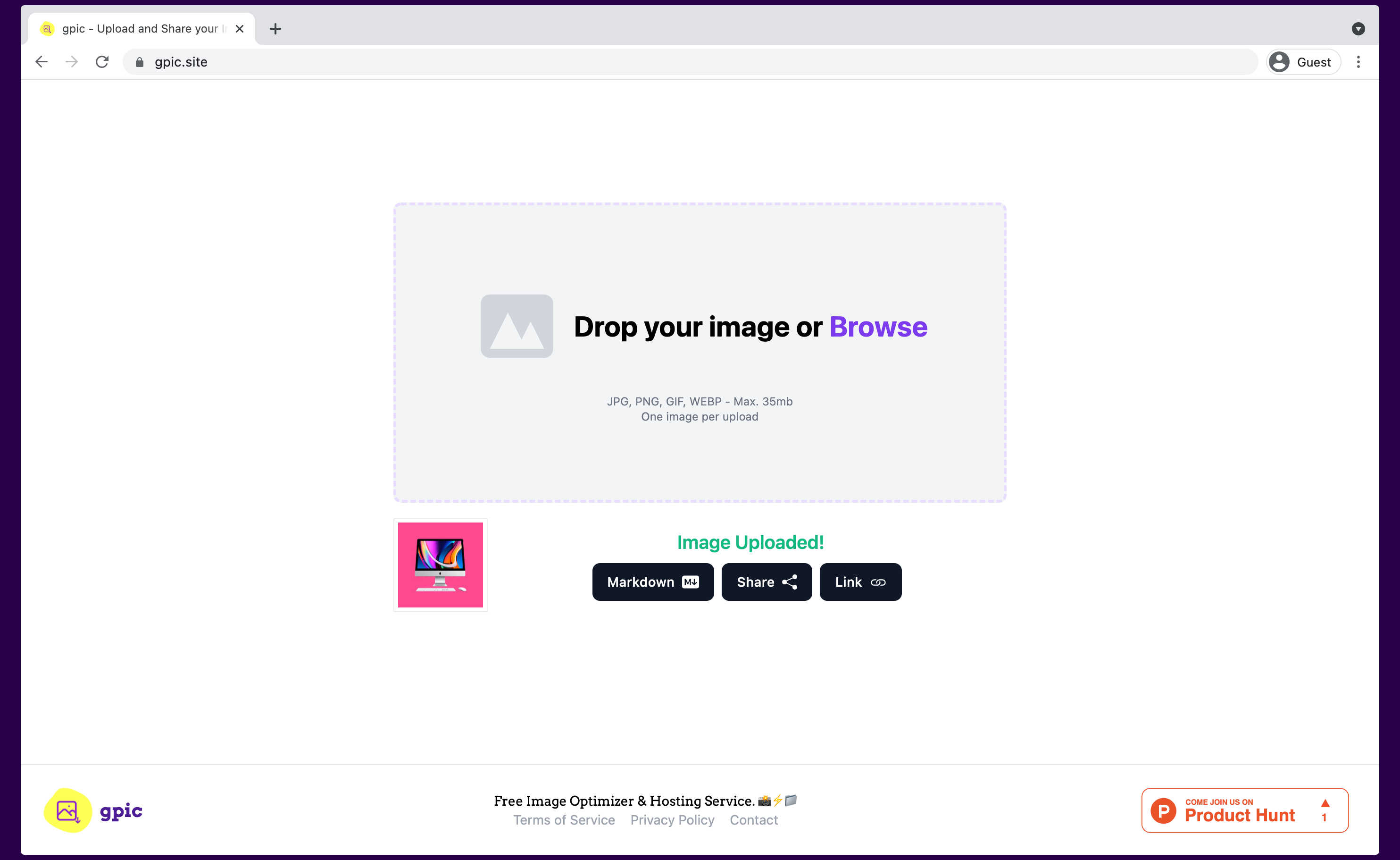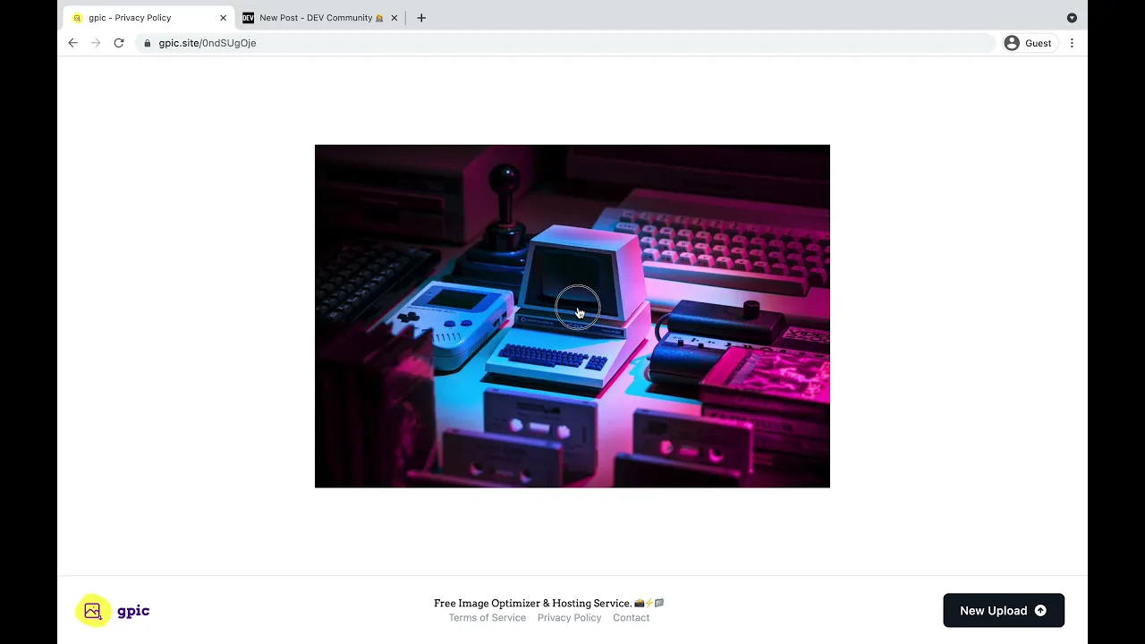 Either you are posting something on Reddit, DEV, Indiehackers, or any other place, you need to host your images somewhere. gpic is the simplest way to do that! Automatically optimizes images whenever possible and it does it for free. ????