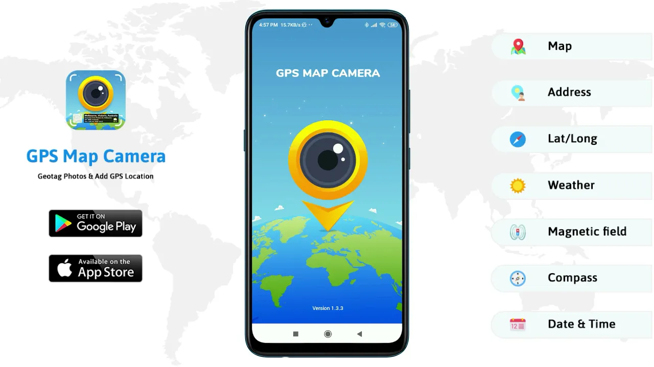 Whether It’s your travel memories or your Visit to a particular place, with GPS Map camera stamp application, add Datetime, Map, Latitude, Longitude, Altitude, Weather, Magnetic field, Compass to Your Camera Photos. Track Live location along with your captured Photos by GPS Map Camera: Geotag Photos & Add GPS Location Application. Send your Geo Location of Street / Place added photos to your Family & Friends, and let them know about your best Earth travel memories. How to add GPS map location on photos? ? Install GPS Map Camera: Geotag Photos & Add GPS Location Application in your SmartPhone ? Arrange Formats of Stamps, Change Settings according to Your requirement of GPS map Location Stamp ? Add GPS Location stamps automatically to your clicked pictures Interesting Features: ? Get Custom camera with Grid, Ratio, Front & Selfie camera, Flash, Focus, Mirror, Timer, capture sound Support ? Add Date & Timestamp from various formats as an image tag ? Add Template of Map, GPS Address, Latitude longitude, Weather, Magnetic Field, Compass with real-time GPS tracking ? Template with Notecam feature ? Set Map type as Automatic or Manual ? Change Map type from Normal, Satellite, Terrain, Hybrid Options ? Set GPS Coordinates from DMS or Decimal Options for GPS Stamp ? Set Temperature Unit from Celsius or Fahrenheit Options Why have GPS Map Camera Application in Your Smartphone ? To get Satellite Map Stamp on Photos while clicking ? For putting GPS Map Location Stamp on photos ? Adding Geotag Stamp & date stamp to make click focused ? Find Photo Location stamp with geo tagging camera at one place ? To Add Date Timestamp which performs as both timestamper & date stamper ? Works as GPS note camera that easily stamps GPS details on photo ? Put Longitude, Latitude, Address, Date-Time, Location stamp to Photos Utilize as GPS tracker on Photos ? To Get Location image stamp with simple camera GPS ? Camera timestamp having custom stamps for adding details manually Most Efficient Application For Following Groups of People: ? Travelers & Explorers can effectively utilize Geo-tagging camera ? People associated with business related to real estate, Infrastructure, Architecture can easily apply GPS Map Location stamp to their Site Photos ? Individuals having Destination celebrations of events like Wedding, Birthdays, Festivals, Anniversaries, etc ? Anyone who wants to add GPS Details on their photo as a GPS notecam can have this App. ? Persons having outstation Meetings, conferences, Conclaves, Meetups, Events arranged by companies or Institutions solving and serving a particular purpose ? Travel, Food, Fashion & Art Bloggers can advance their experiences by adding GPS Location through GPS Map Camera ? Place Oriented businesses, where You require to send images with Live Location To Clients. New update: ? Set a timer while clicking ? Mirror added to the selfie camera ? Camera capture Sound For experimenting with such Interesting Features MUST Download GPS Map Camera: Geotag Photos & Add GPS Location Application Right now on your Smartphone.