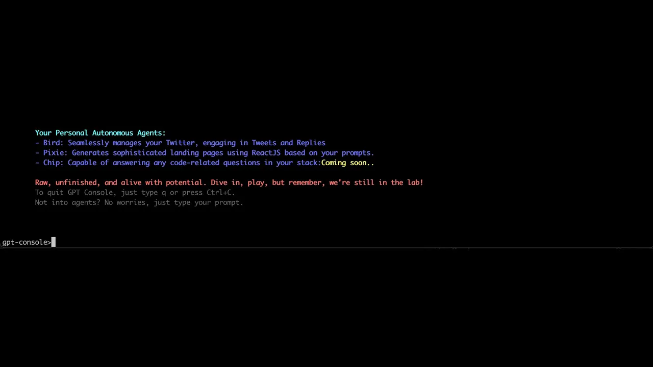 GPTConsole helps developers generate web/mobile applications and perform web automation through prompts. It offers an NPM package that developers can install on their local machines. We are launching a CLI with infinite context and two autonomous AI agents.