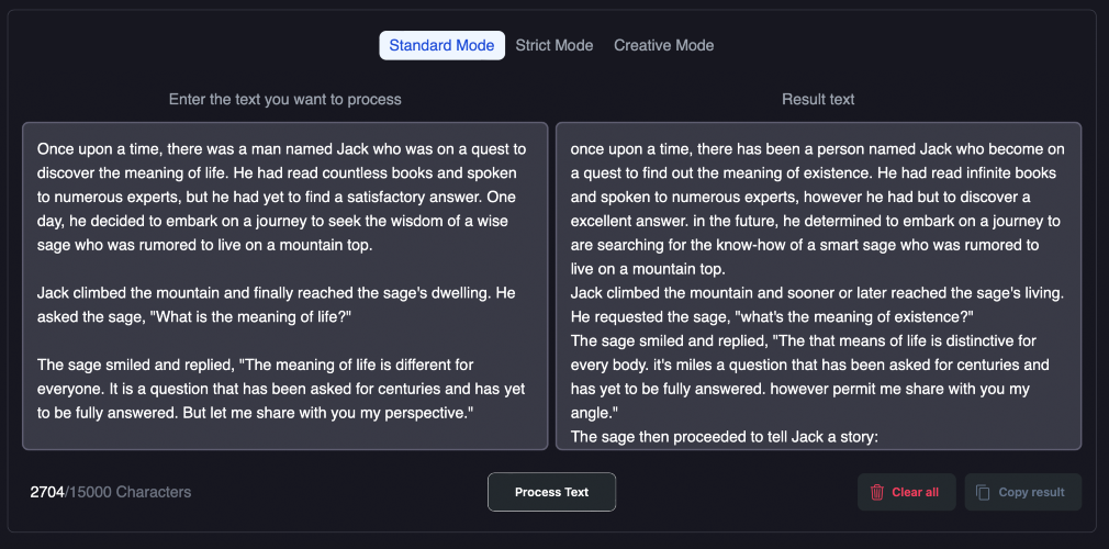 GPTHero is a free modification tool employs various techniques such as synonym replacement, sentence restructuring, and word omission to generate text that retains its meaning while reducing the chances of being flagged by AI detectors.