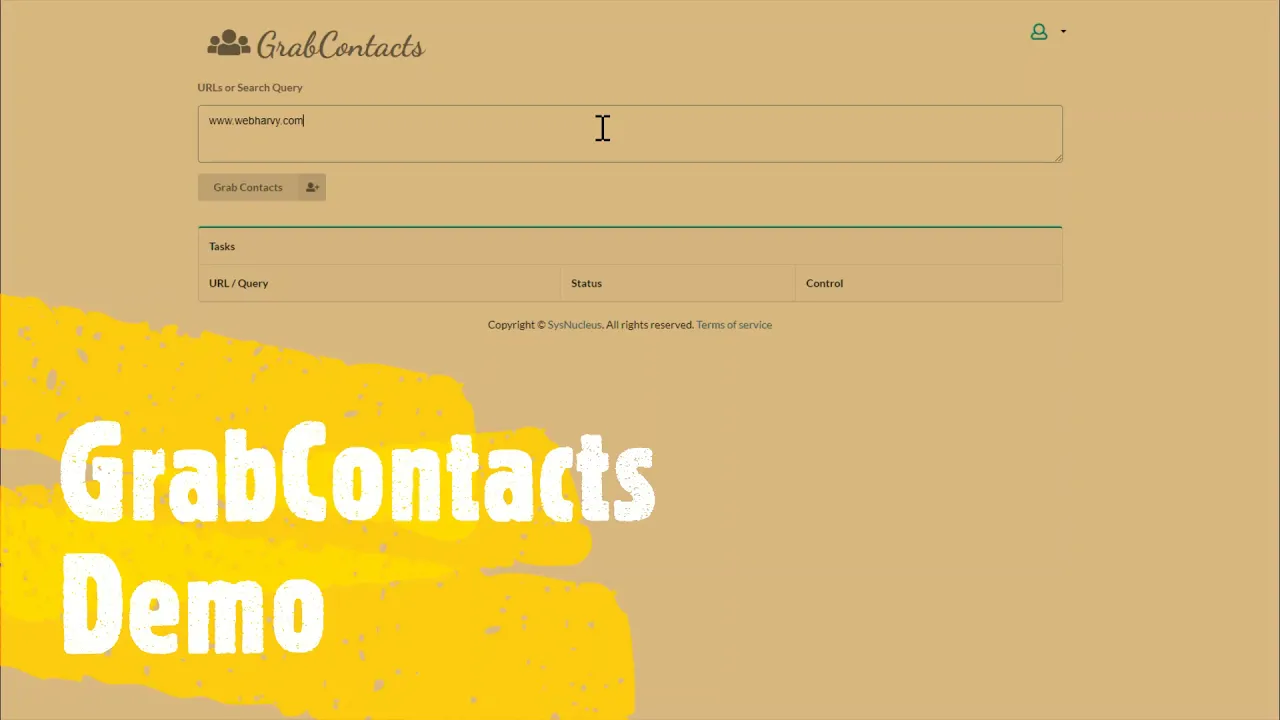 With GrabContacts you can easily scrape email addresses, phone numbers & social media links from websites and search queries. You can submit either a list of websites or search queries (like 'Accountants in New York' or 'Restaurants in Paris') and GrabContacts will automatically fetch contact details (email, phone) by crawling relevant web pages.