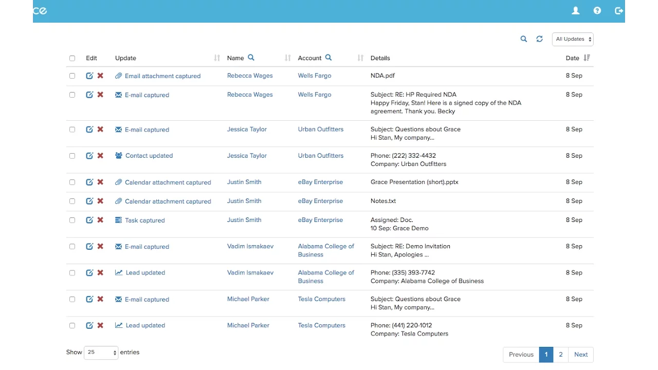 Grace automatically captures sales data across emails, calendars and sales tools and enters it into your CRM. Sales people do not like logging fresh data inside the CRM. In fact, an average salesperson spends over 6 hours per week on the CRM management, but manages to complete only 40% of sales updates. The lack of quality CRM data leads to all sorts of problems, including incorrect financial forecasts, neglected clients, missed opportunities, and delayed commissions. Grace automatically captures and updates your customer data, opportunities and activities to provide a complete and up-to-date view of your sales pipeline. Enable your sales team to focus on their main duties by eliminating manual data entry from your CRM!