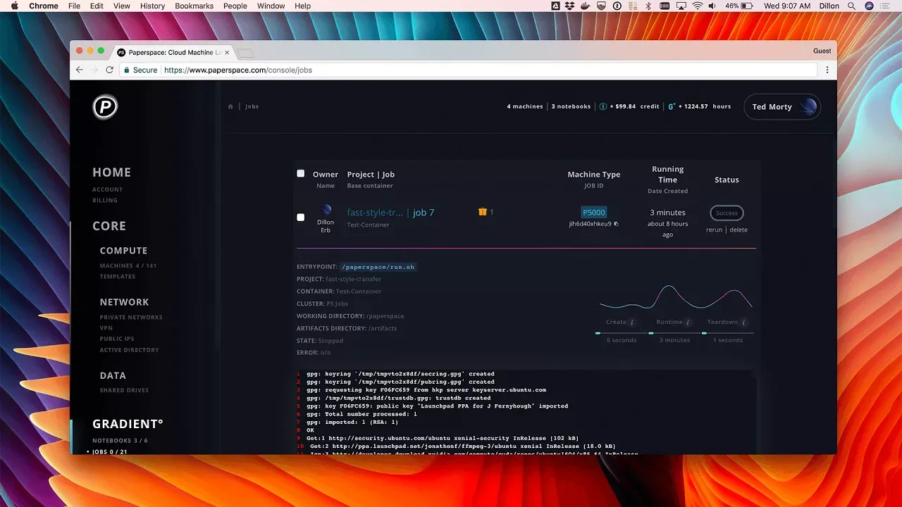 What is Gradient° ? A suite of tools for exploring data, training neural networks, and running GPU compute jobs. Gradient° includes 1-click jupyter notebooks, a powerful job runner, and a python module to run any code with full power of the Paperspace GPU cloud. Launch a GPU-enabled Jupyter Notebook with 1-Click These interactive coding environments let you combine code with equations, visualizations, rich text, and other media. They make it easy to explore data and coding concepts, collaborate with other people on projects, and easily get a coding environment provisioned in seconds. Train and deploy directly from your command line. With the Gradient° job runner you work on your local machine and submit "jobs" to the cloud to be processed. It only takes a few lines of code to start running on Gradient.