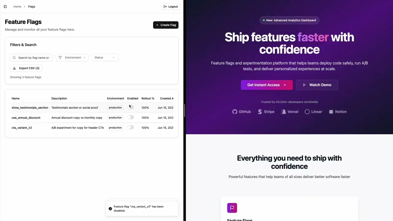 GradualRollout is an alternative feature flag tool to popular players like LaunchDarkly or split.io. It is developed in focus with simple usability, cost effective and highly tailored for small teams