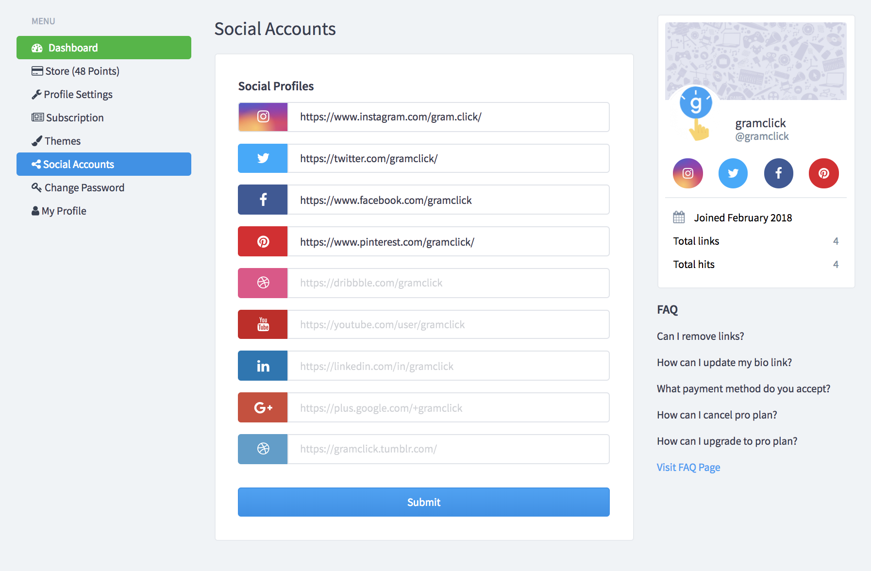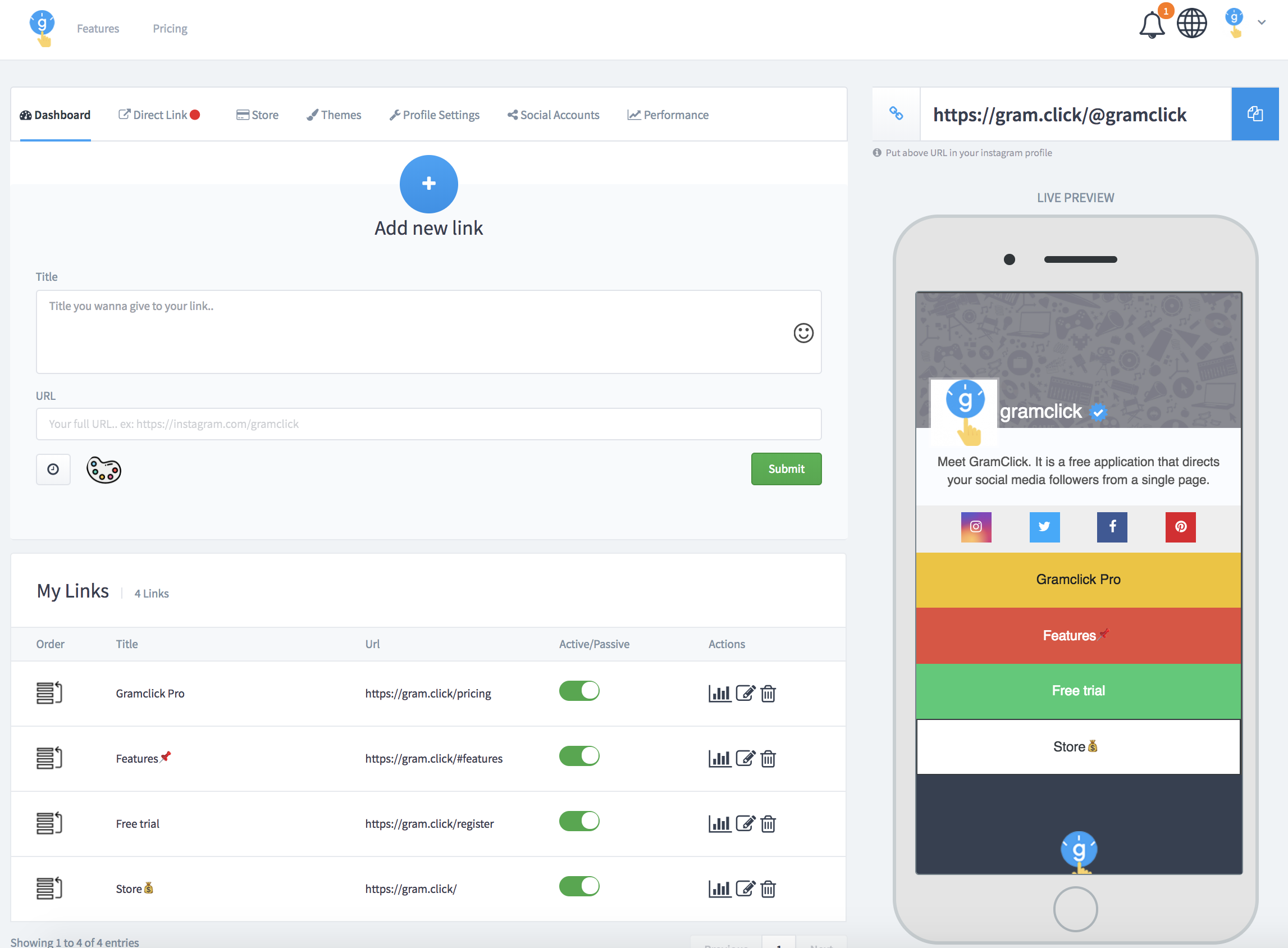 GramClick is a free application that directs your social media followers from a single page. Are you a blogger, an artist or a brand trying to promote more of your product? Want to get more out of your social media's link? You no longer don't have to constantly change your link in your bio.