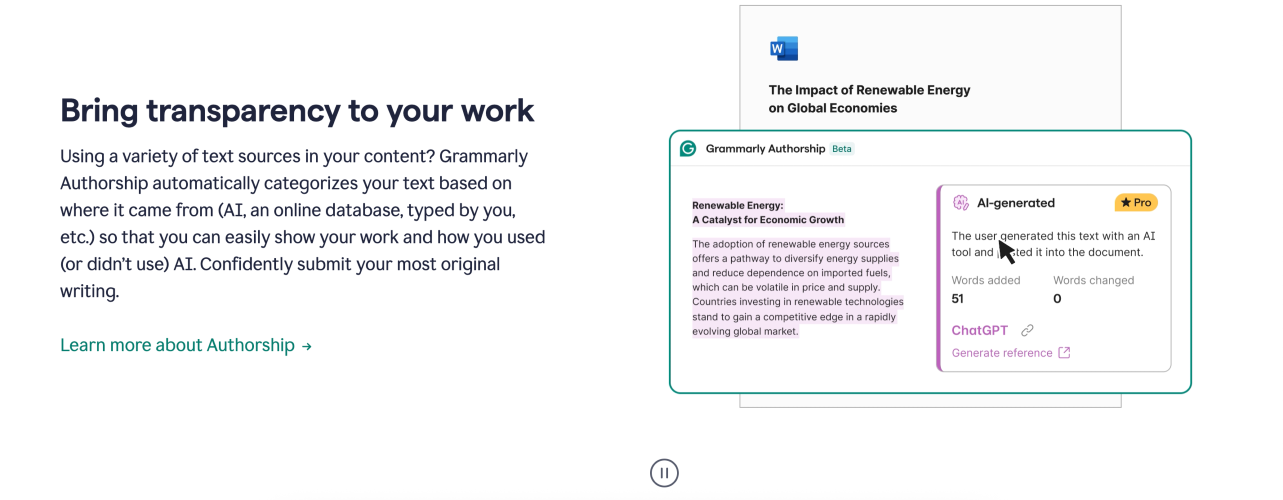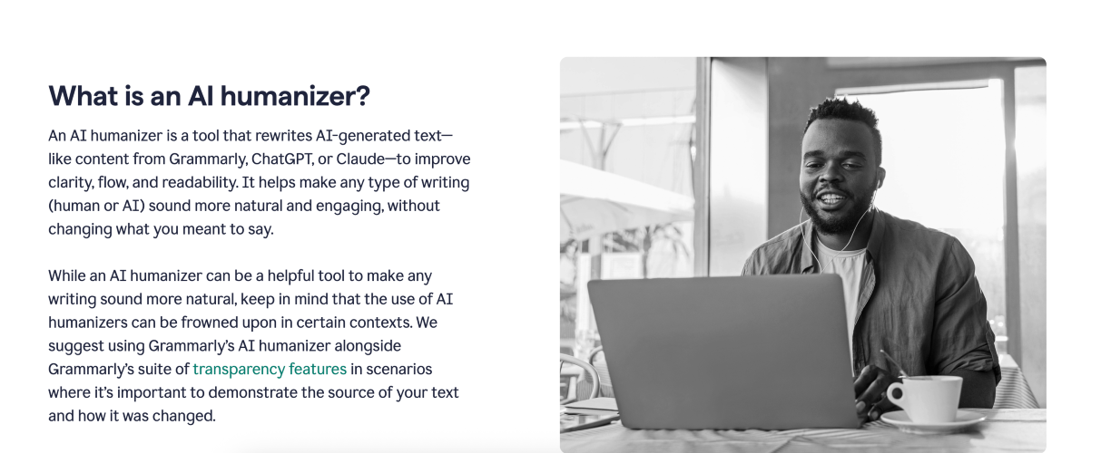 Grammarly AI Humanizer is a built-in capability of the Grammarly platform designed to improve the naturalness and readability of content generated with the help of AI. It works by identifying traits often associated with automated writing, such as rigid sentence patterns or repetitive phrasing, and then revising the text to create smoother flow, clearer expression, and a more engaging tone. Throughout this process, the original intent of the content is maintained. The feature operates alongside Grammarly’s wider set of writing tools that support correctness, tone consistency, and stylistic refinement across workplace documents, online articles, emails, and other forms of professional communication. Rather than focusing solely on surface-level edits, the humanizer introduces subtle variations in wording and structure to reflect how people naturally express ideas. Its purpose is not to obscure the use of AI, but to help users communicate more effectively and responsibly. When combined with Grammarly tools such as plagiarism detection and authorship indicators, it supports transparency and ethical writing practices in both academic and professional environments