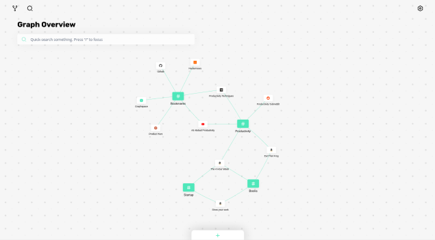 With Graphspace you can keep all your ideas, links, tasks and more in one place, a potentially infinite graph. This way of storing and displaying allows you to find exactly the information you are looking for and all related to it within seconds. As a result, you will experience completely new dimensions of productivity.