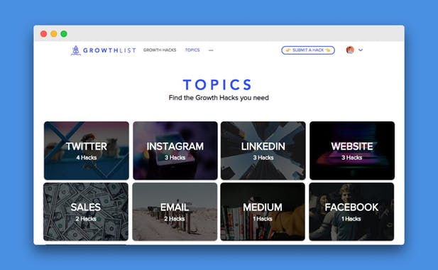 GrowthList is a crowd-sourced list of actionable, proven Growth hacks sourced by our community