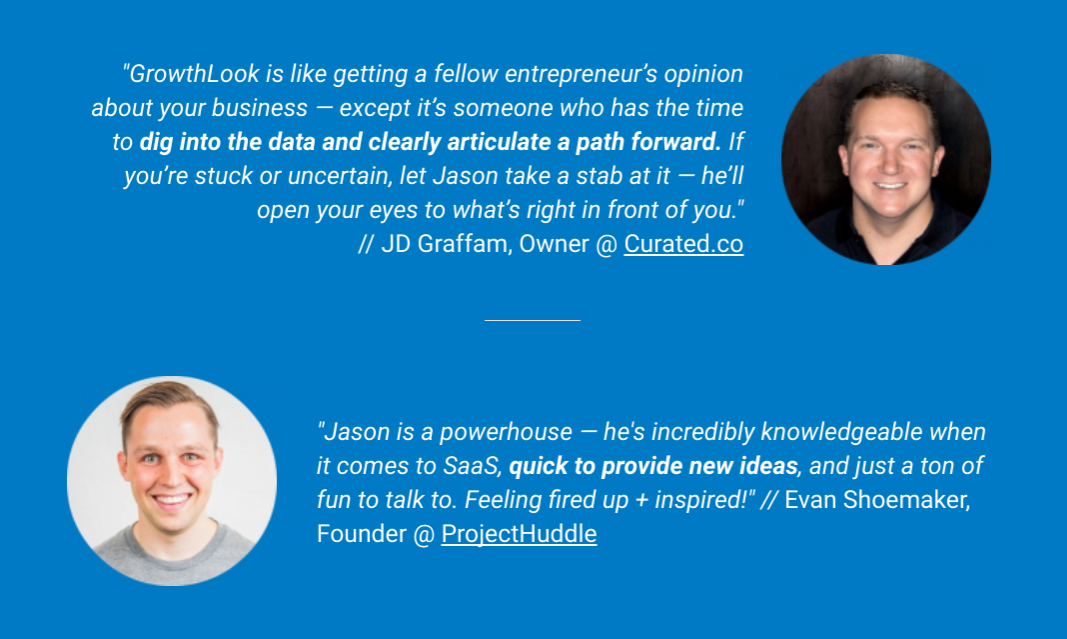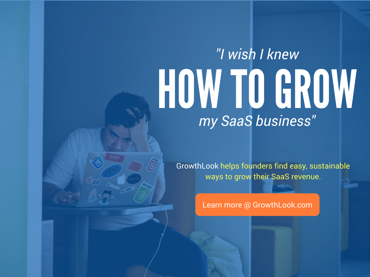 GROWTHLOOK | Expert analysis of your traffic, UX, revenue & competitors in just 7 days GrowthLook is a quick-turnaround service for SaaS startups that provides easy ways to grow revenue. Within 7 business days, you get a customized & actionable growth report that includes a custom UX walkthrough video of your website & app, a statistical analysis of traffic & revenue trends from an experienced SaaS marketer & product strategist, and much more. All for one flat fee! No hourly rates, annual contracts, or other entanglements. Just focused actionable advice on how to grow your SaaS business.