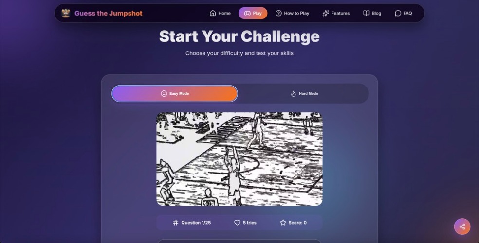 Guess-the-Jumpshot.com is a free online basketball trivia game where fans put their knowledge to the test by identifying NBA players from their shooting form. Each round presents a video or image of a player taking a jumpshot, and your challenge is to guess who it is. With iconic players, legendary shots, and hidden challenges, the game offers endless fun for basketball enthusiasts. Whether you’re a casual fan or a hardcore NBA follower, Guess the Jumpshot combines sports knowledge with quick thinking, making it the ultimate test for hoop fans worldwide.