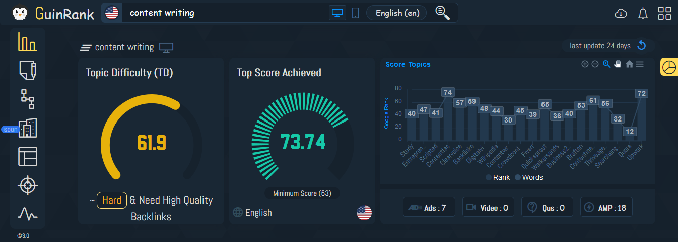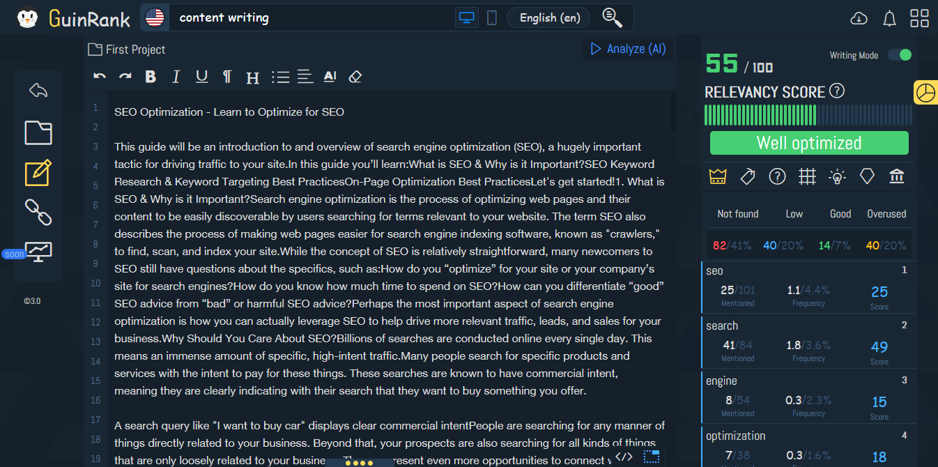 Create Content That Google Wants to Rank! Boost your Ranking in Google By just including the Recommended Keywords and Phrases. Improve your Content Score based on Google’s guidelines & LSI.