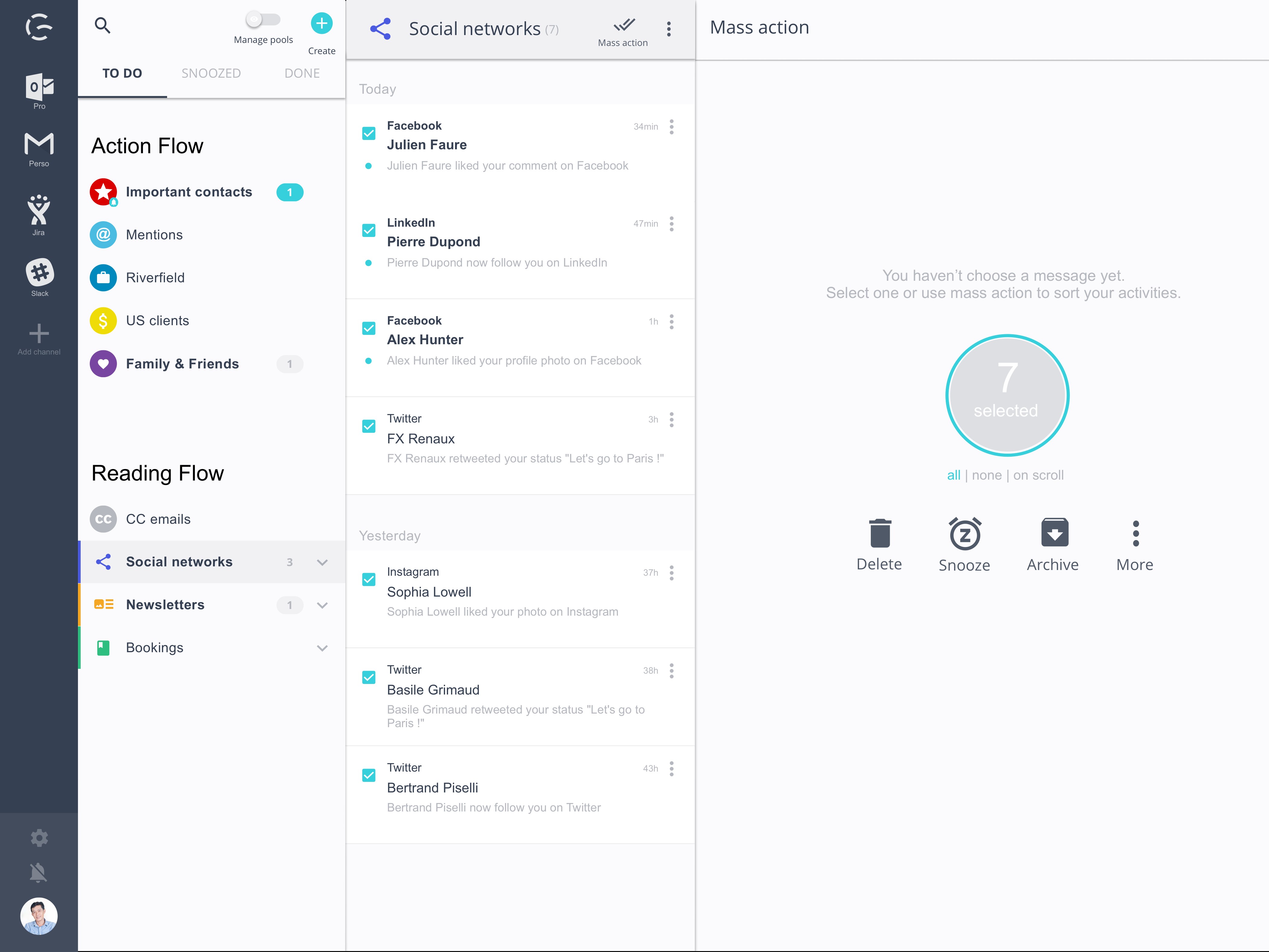 Avoid unnecessary interruptions with an app made to preserve your productivity. Why do you need Gwapit? With the multiplication of tools and services we use in a professional context, it's getting harder to stay efficient. Some notifications are critical and necessary, but most don't need you to pause what you're currently doing to deal with them. With Gwapit, you can focus on your work without missing essential alerts. Main features: Fetch notifications from your collaborative apps: Slack, Gmail, JIRA, GitHub and many more. Filter notifications with a service-agnostic thematized logic Pick notification schedule and priority per group Act remotely and in a flash with bulk actions