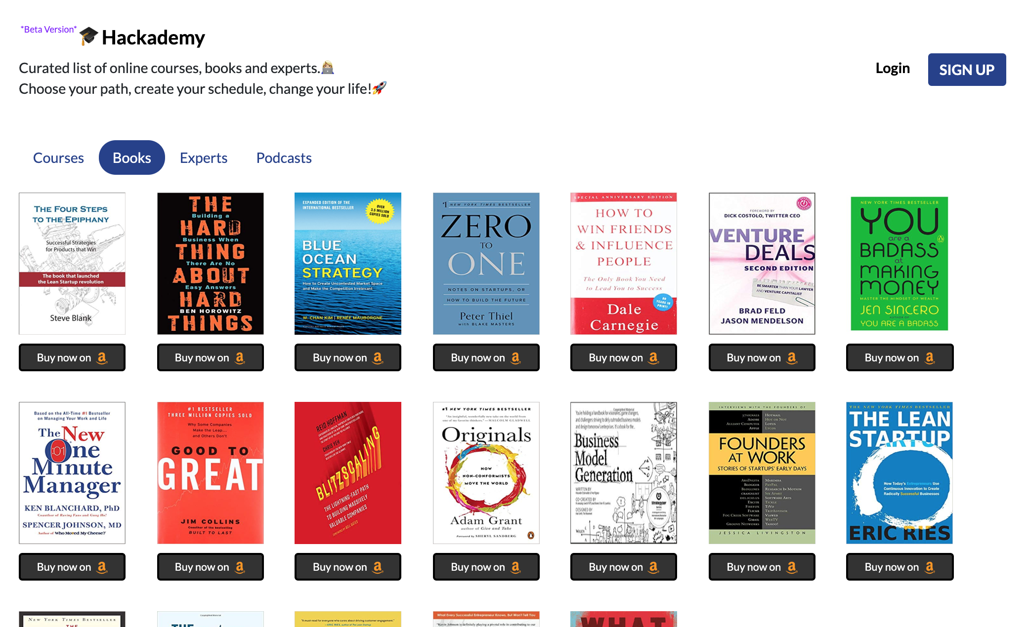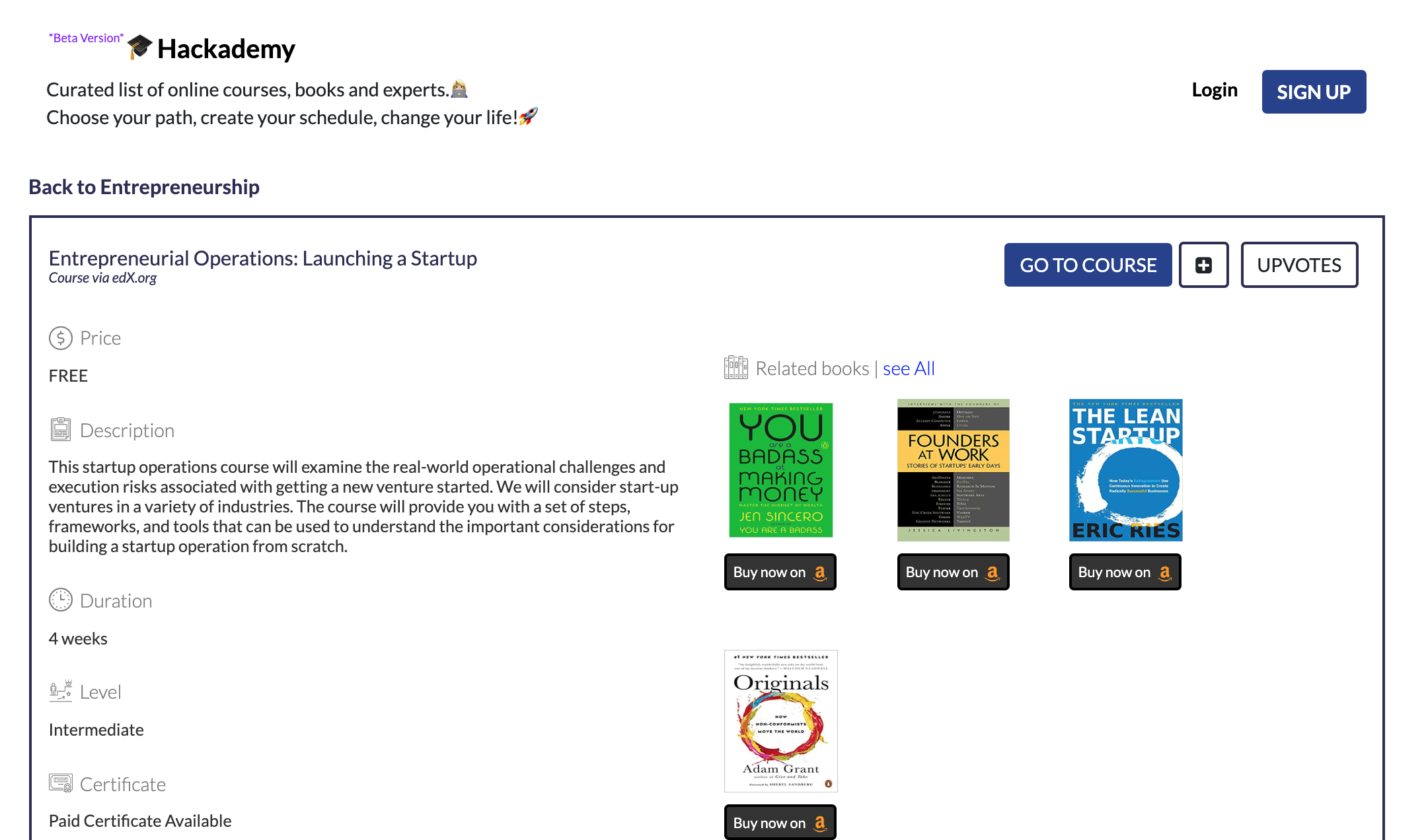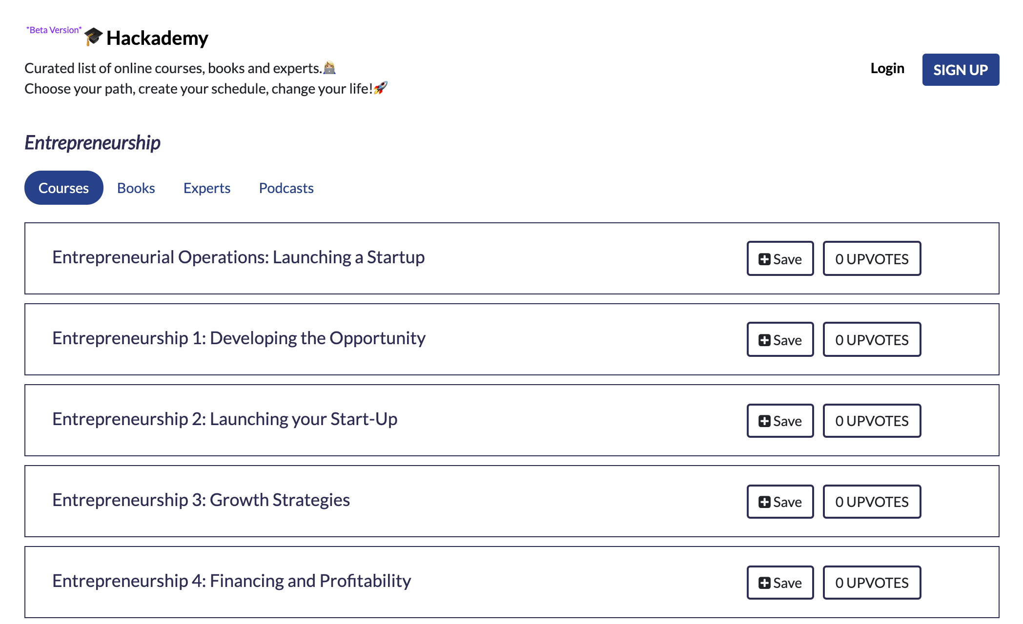 We believe that education should be accessible to everyone on the planet. Hello everyone ?, Welcome to Hackademy! This side-project is focused to bring the best-curated courses and content for people around the globe! Looking for personal development? create a new business? change careers? or simply learn new skills? Feel free to browse around, upvotes courses, save to a wishlist and enjoy all the internet best online education! How does it work? All the site content is 100% FREE! How we make money? 1° We have a premium account, that is only $7, yes one time only! Not a subscription!. 2° Some of the courses and books that we select might have affiliate links, so if you buy the course through our link we earn a commission. Don't worry, the quality of the site content is more important than money. Our goal is to build a community of hackers, makers, indie startups and develop the new era of digital professionals! Unlock your hacker side, today! Liked? Hated? Feedbacks? Comments? I will love to hear from you all!? Say Hi! [email protected] https://twitter.com/joaogonzalz https://www.linkedin.com/in/joaogustavogonzalez/