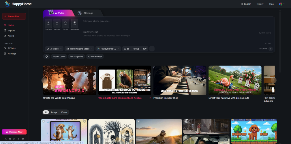 HappyHorse is an AI video generator focused on what users care about most: smoother motion, clearer 1080p output, stronger scene continuity, and better response to prompt direction. It is designed for creators, marketers, indie teams, and visual storytellers who want cinematic short-form clips without getting stuck in brittle motion or disconnected shots. Whether the workflow starts from a text prompt, a still image, a visual reference, or source footage for restyling, HappyHorse gives users a practical way to explore and generate video that feels more coherent from start to finish.