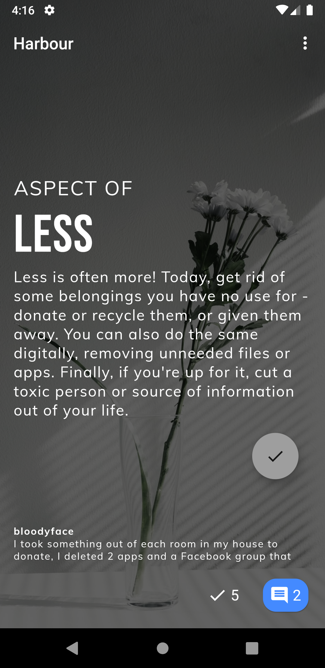 Harbour is a life-changing community and app for people seeking newness in their lives. Every day, the world gets the same challenges to complete and share their stories. For those who are bored, adventurous or just stuck in a rut, Harbour’s guaranteed to make your day more interesting. Harbour is available for free on iOS and Android.
