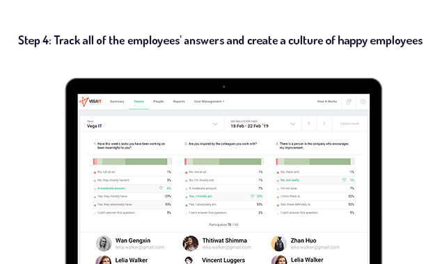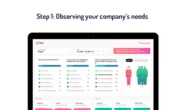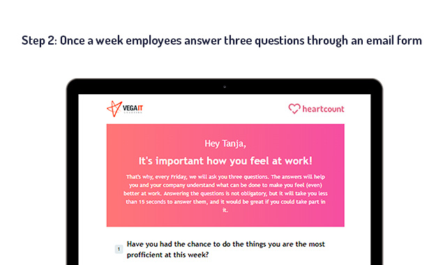 Are you done with boring surveys that eat up all of your time, and then no one acts on the results? Heartcount is allowing you to give immediate feedback to your manager, team lead or anyone else, by answering three simple questions each Friday.