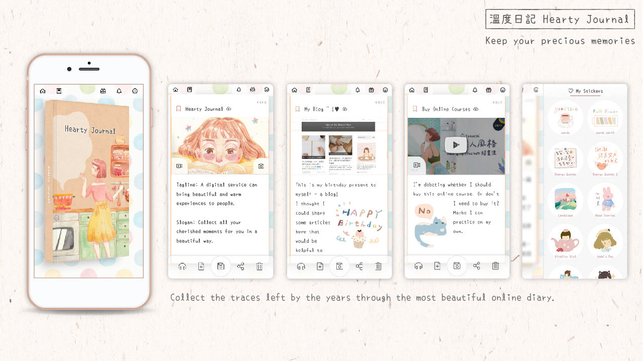 If you need a place, get yourself ...... ? Murmur ? Keep daily reflections privately ? Pour your heart out / brain dump ? Keep an affirmation and gratitude list ? Get rid of melancholy ? Protect and attract “good energies” ? Treasure good memories Then, Hearty Journal is for you. And it makes you feel more enjoyable in the process of doing these things. Hearty Journal is an online personal diary and journal app with a focus on privacy. Its aesthetic looks like a piece of notebook paper with hand-drawn illustration and handwritten words on it. Securely record your thoughts, feelings, ideas and private moments with the ease of writing on a pad of paper. You can create diary entries with beautiful illustrations, photos, YouTube videos, and cute stickers. Hearty Journal has built in meticulous themes, 1,300+ various lovely stickers and 20+ nice fonts. The stickers are in different categories including weather, seasons, food, traveling, flowers, animals, emoji, cute character, handwriting words, etc. You will feel happier after writing in your journal. The diary records everything in our hearts, so privacy is our primary concern and consideration. Here on Hearty Journal, Newly created diaries are private. And all connections are encrypted via TLS 1.3 - technology designed for online banking. You can also set a password lock. Once set up, all your Hearty Journal apps which are installed on different devices will be locked. You can write down your real thoughts and feelings without any worries. At the same time, it's very convenient and it works seamlessly with your computer, tablet and phone. Also, assuming you're on Android now and want to switch to an iPhone someday in the future, it doesn't affect your journaling. Hearty Journal integrates beauty, convenience and safety in one.