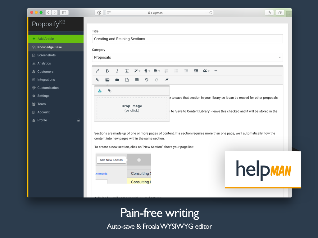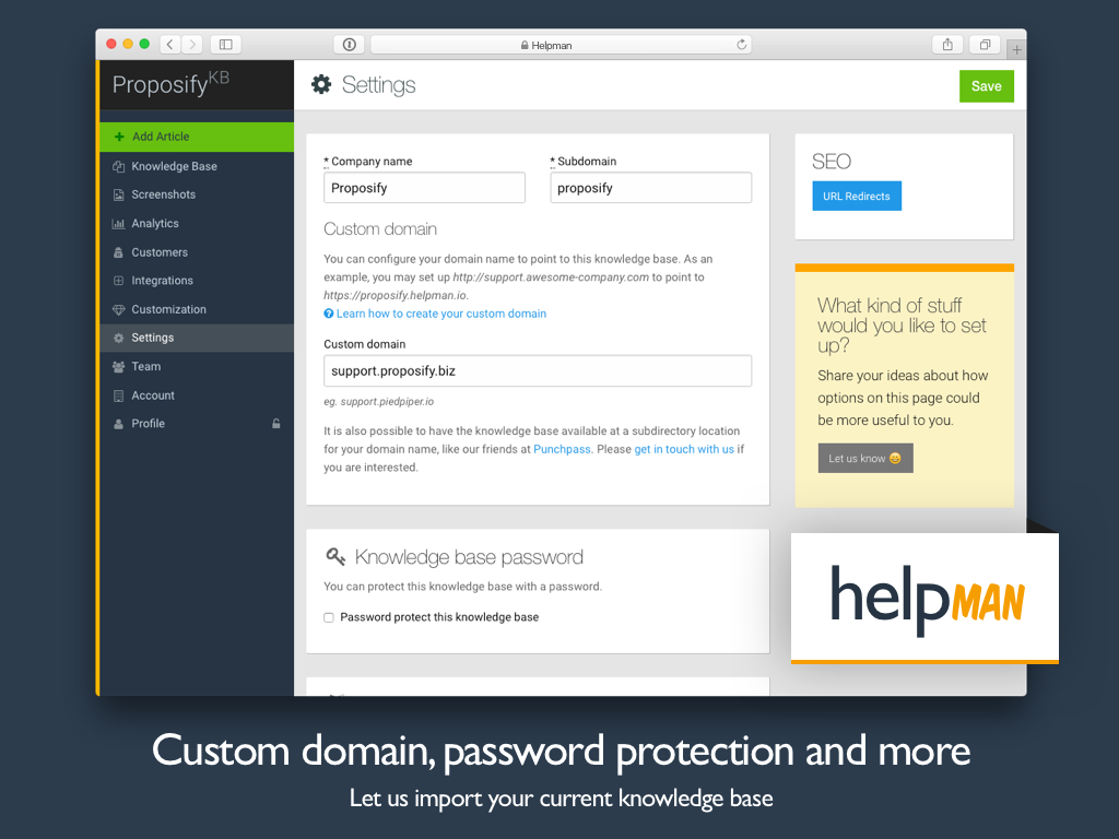 With Helpman, SaaS startups and bigger companies create and publish knowledge bases for their product. We focus on making it easier to manage the knowledge base/help center and making sure that users find answers they are looking for.
