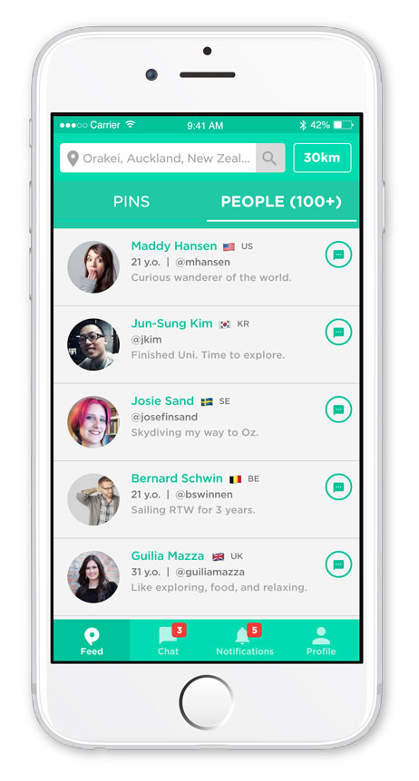 HerePin provides travellers a fun, new way to meet people and see what others are doing in real-time based on your location. Meet travellers to go on adventures with, discover local secrets, and get off the beaten track, wherever you are. “Travelling by yourself makes it hard to meet like-minded travellers. It’s not easy just to walk up to a group of people at your hostel and introduce yourself. HerePin helps break the ice and lets you find travellers who are interested in doing the same stuff as you” – Max Wordsworth HOW IT WORKS • Sign up w/ Facebook • Create your profile • Set your location • See what's happening on the live public feed • Start chatting with travellers nearby BRINGING THE WORLD TOGETHER THROUGH TRAVEL One of HerePin’s goals is to make travel less lonely. So we’ve developed an app that addresses the limitations of other social networking apps by making it easier to connect with travellers - wherever you go.