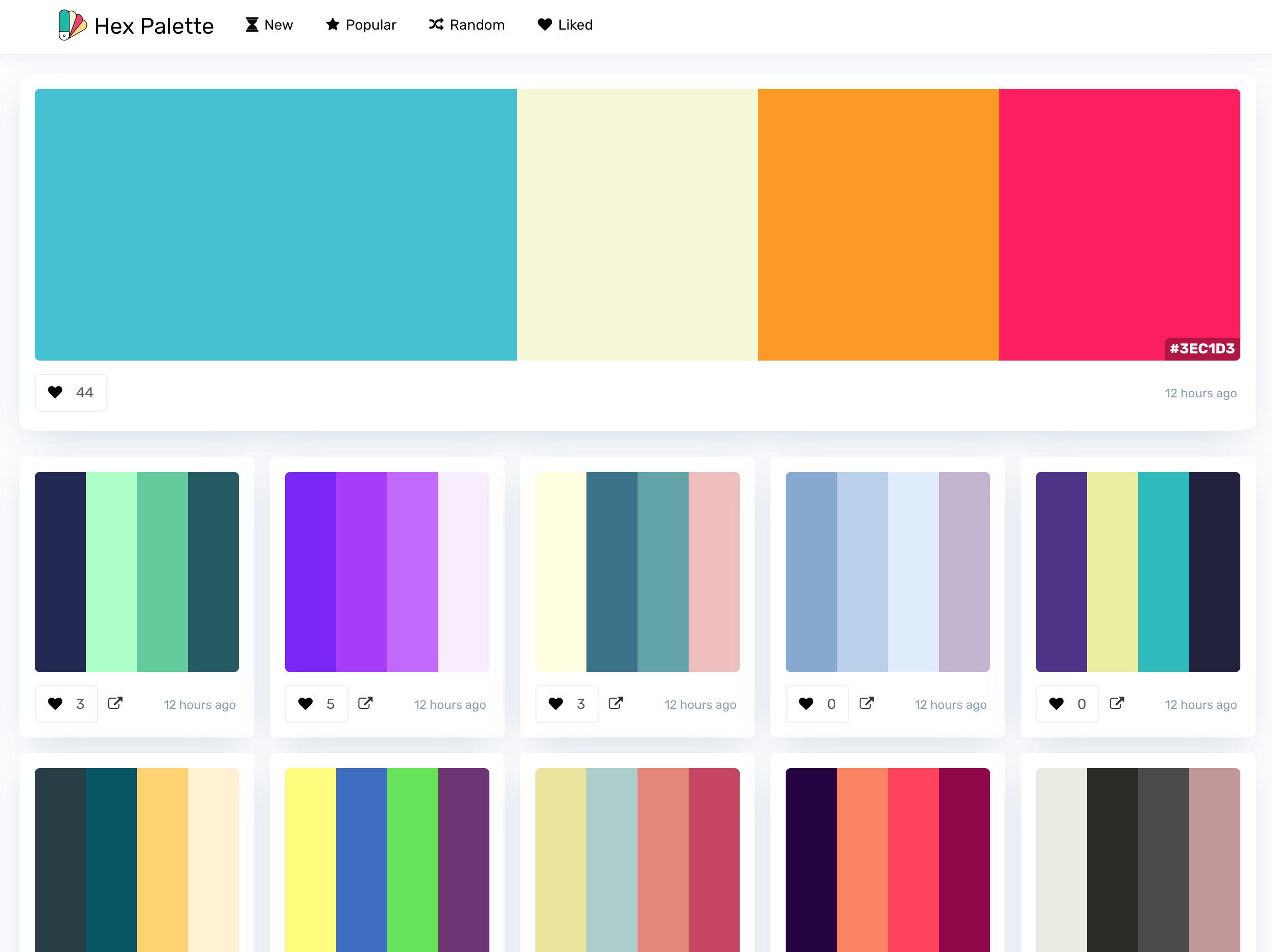 Hex Palette was created from a Web Developer for other Web Developers to find wonderful color combinations that are created by Web Designer. This will help also Web Designers and Artist for their next Project or share their new created color combination.