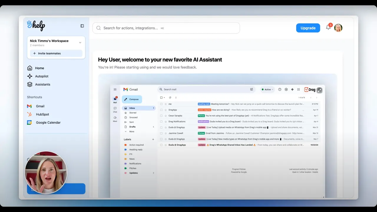 Hey Help is an AI Executive Assistant in Gmail that helps you reclaim 1 hour back each day. It takes over inbox admin tasks (sorting emails, drafting replies, sending follow-ups), so you can focus on real work. No learning curve. No new tools. No bots to train.
