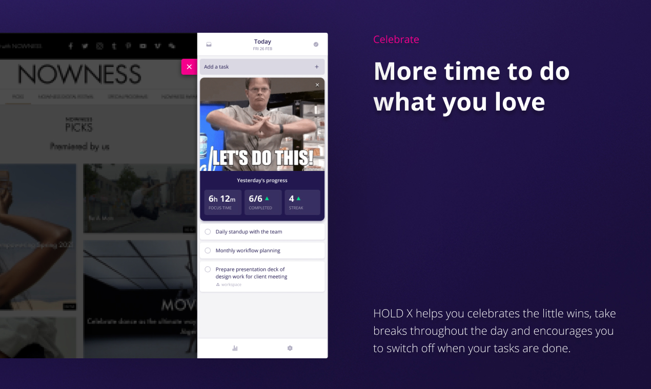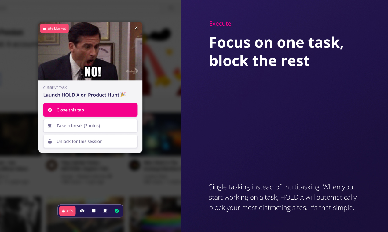 With HOLD you can plan your day from within your browser and execute without distractions.