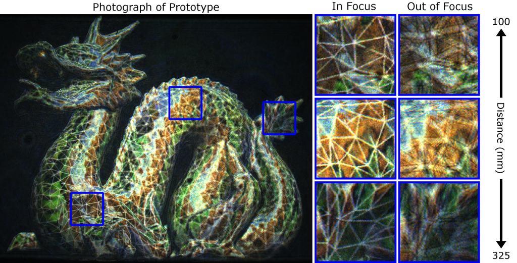 Explore how digital holography can be used to build novel near-eye displays for virtual and mixed (or augmented) reality. Experimented with true, phase-only holograms in which the image is formed by the interference of laser light. Addresses some of the known limitations of digital holograms and demonstrate how holography can add powerful, new features to near-eye displays: per-pixel focus control, vision correction, and unpresented combinations of form factor and field of view