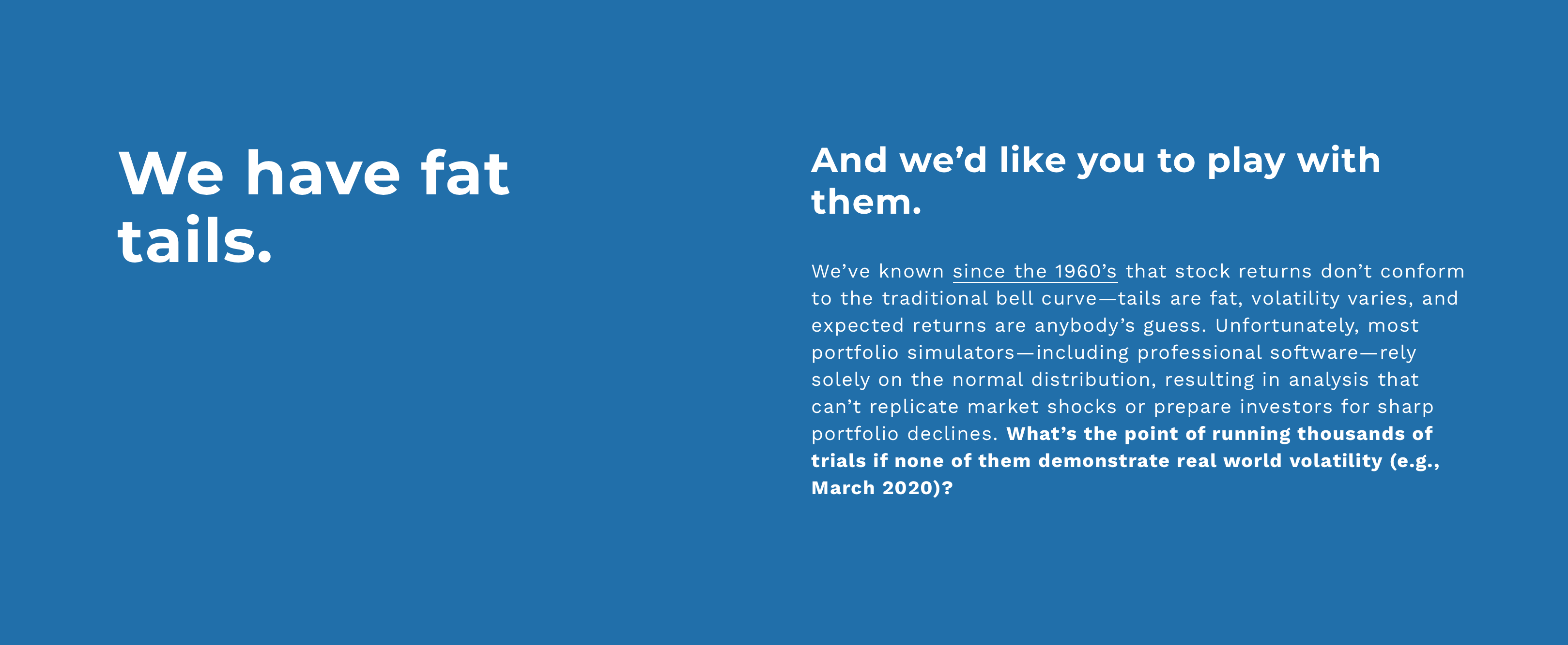 Honest Math is a passion project. The founder is a finance professional with little patience for bad analysis and advice, and frustration with the quality of personal finance tools available to investors and advisors. People need serious financial planning software. The internet is giving people more power than ever to take control of their personal finances. We love seeing the growth of the financial independence movement, but it bothers us tremendously that some of the most popular "retirement calculators" and "FIRE" tools on the web are terribly flawed. And we expect that most users of these models are unaware of just how ill-suited they are for long-term planning. So, our aim is to empower folks with better information and resources. We hope you'll give us a visit and take our new model for a spin. We'd love to hear your feedback and answer any questions you may have.