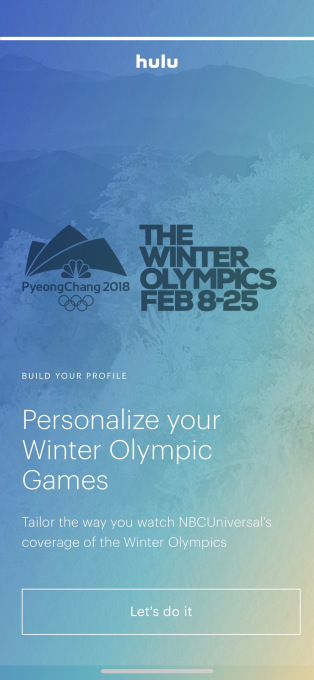 Hulu today has quietly launched its personalized Olympics experience in its Live TV app. The company hasn’t officially announced the new feature, but the option to track your favorite Olympics events pops up when you launch the app today, allowing you to pick from various events like figure skating, ski jumping, snowboard, luge, alpine skiing and many others. The company had earlier explained that it would soon debut a personalized dashboard for the PyeongChang 2018 Winter Games, which would allow Hulu Live TV subscribers an easier way to track the activity at the Olympics, including not just the events, but also other content, like medal ceremonies, news, highlights, and more. The new feature, which pops up one time per profile, is straightforward and simple to use. In the app, Hulu presents a list of the events with a little icon representing a sport. To track the event, you just click the plus sign (“+”) to follow it on Hulu.