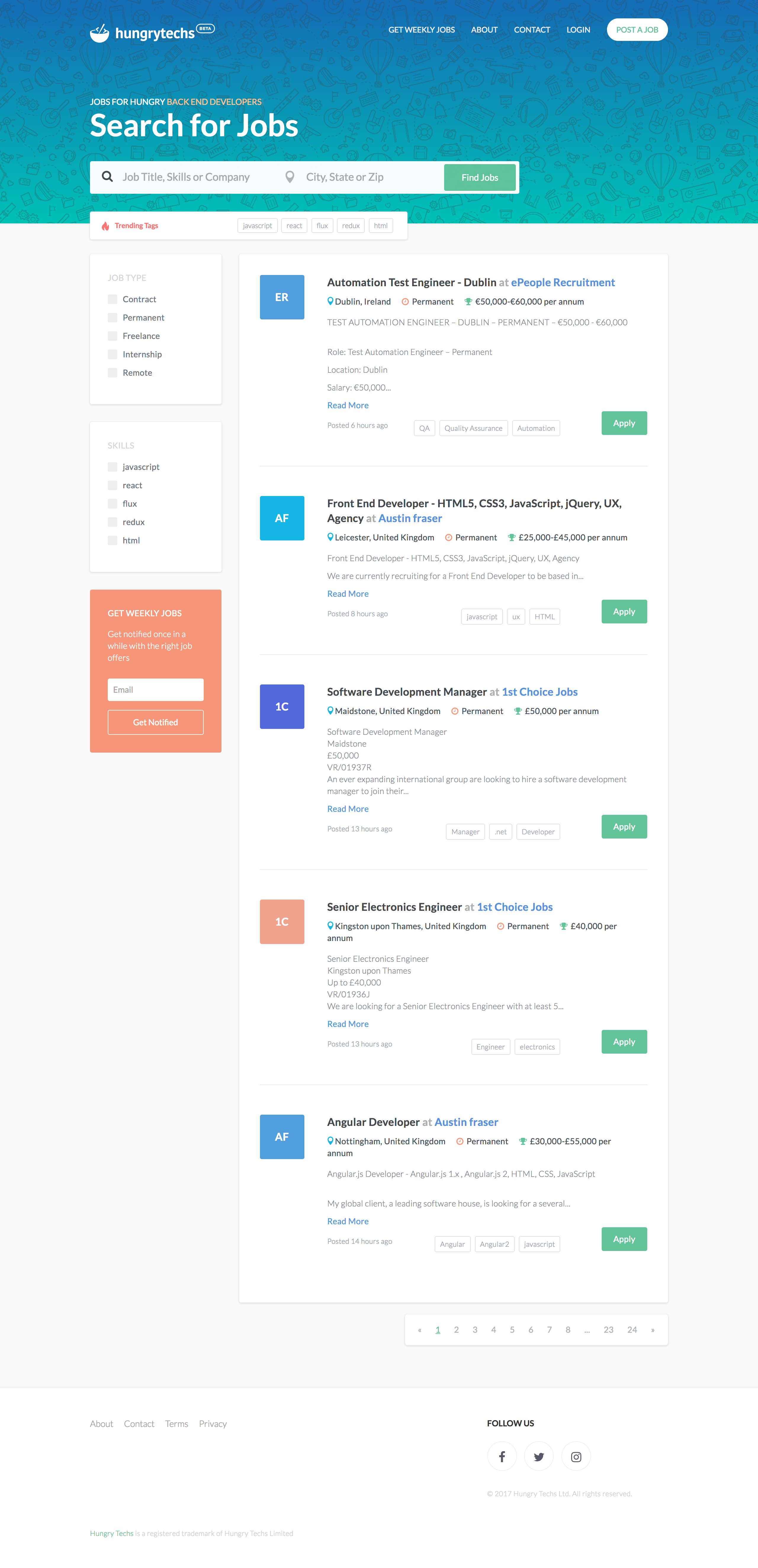 Hungry Techs is an online hub built on the foundation of putting the most-skilled and creative technology professionals in touch with world-class organizations that have a need for talent. Our site distinctively caters to the technology industry, which saves time for job-seekers by eliminating the need to endlessly scour other job boards in search for the right opportunity. We also provide a platform for top businesses to share information about their company and keep our community informed about all of the key factors they’re contributing to in an effort to cultivate the continued success and growth of our industry.