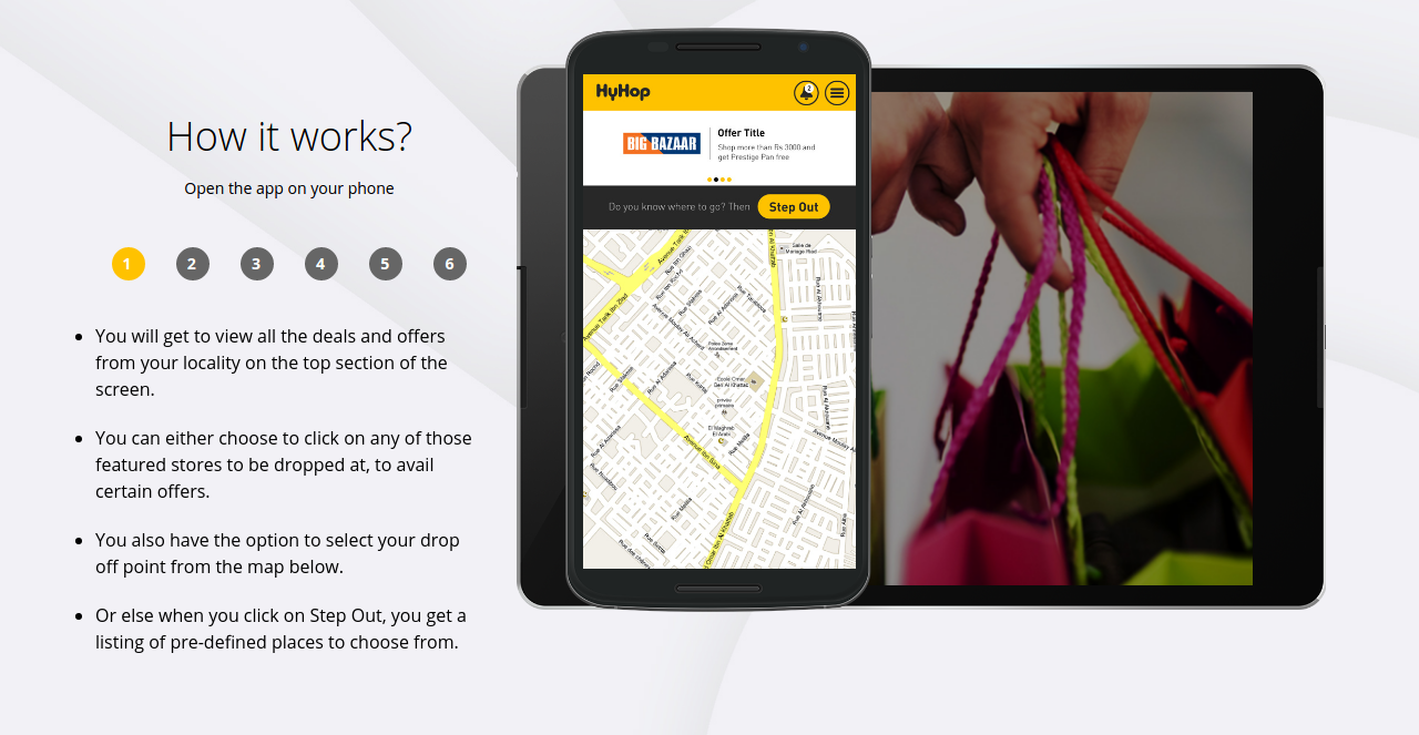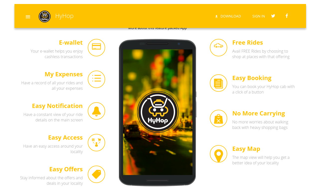Your Hyper-local Shuttle Service Partner Your e-wallet helps you enjoy cashless transactions Avail FREE Rides by choosing to shop at places with that offering Have a record of all your rides and all your expenses You can book your HyHop cab with a click of a button Have a constant view of your ride details on the main screen No more worries about walking back with heavy shopping bags Have an easy access around your locality The map view will help you get a better idea of your locality Stay informed about the offers and deals in your locality