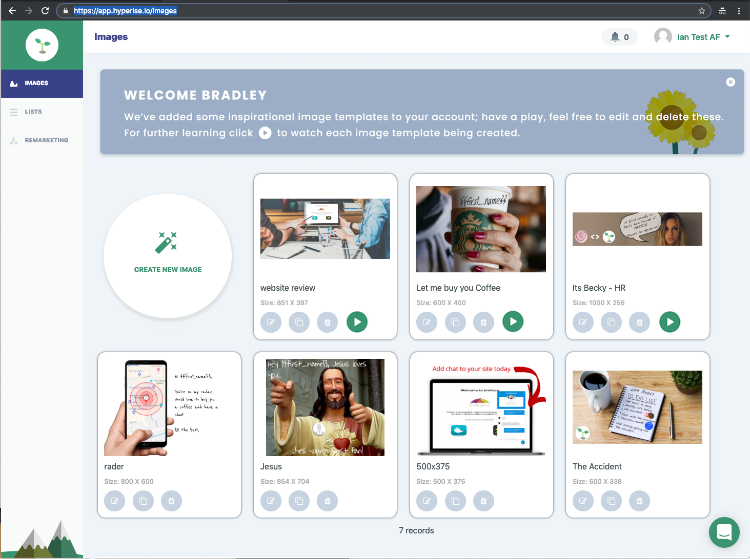 Hyper Personalization Toolkit for B2B Marketers Create dynamic images that personalize to your email recipients and website visitors, on the fly. * Hyper Personalize your whole sales funnel, from cold email and web visitors, through to remarketing ads. * Automatically add prospect details, company name, logo etc, dynamically into your images. * Enrich your images just from the prospects email. * Create dynamic personalized retargeting Ads on Instagram and Facebook. * Works with all your favorite marketing platforms. Personalized emails deliver 6x higher engagement * Personalize images to each email recipient * Create B2B prospect lists by location and SIC code * Validate and Enrich email data, reduce bounces, grow open rates Personalized Website Calls to Action Convert 202% Better * Personalize images and CTAs to your web visitors * Link email campaigns to sales pages to personalize the full sales funnel * Discover companies visiting your website and personalize their experience on the fly Personalization can deliver 5-8x better Ad ROI * Remarket your prospects with personalized images * Display 1-2-1 hyper personalized Ads * Increase Facebook Ads CTR by 500%