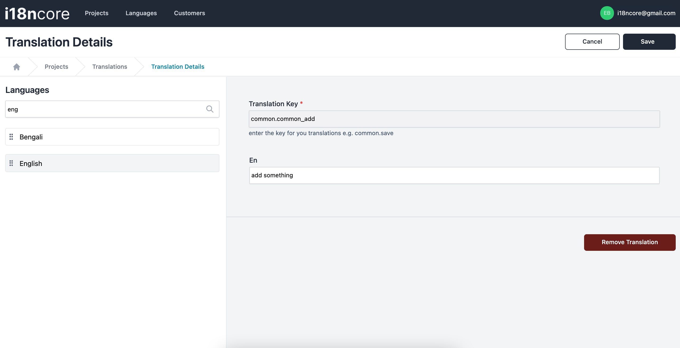 This project came about when working for multiple companies I realised from startups to enterprise level companies, none use a singular source to manage their translations. I got sick of dealing with file systems so I decided to build I18ncore. At present we're in our first Beta release, so please do expect some bugs ( Hopefully not too big ) but we will constantly be working to improve your experience with our product.